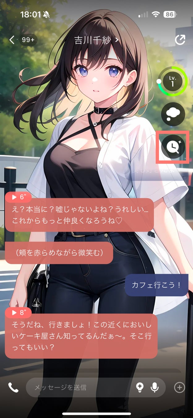 STEP1) AIキャラのトーク画面の時計アイコンをタップ