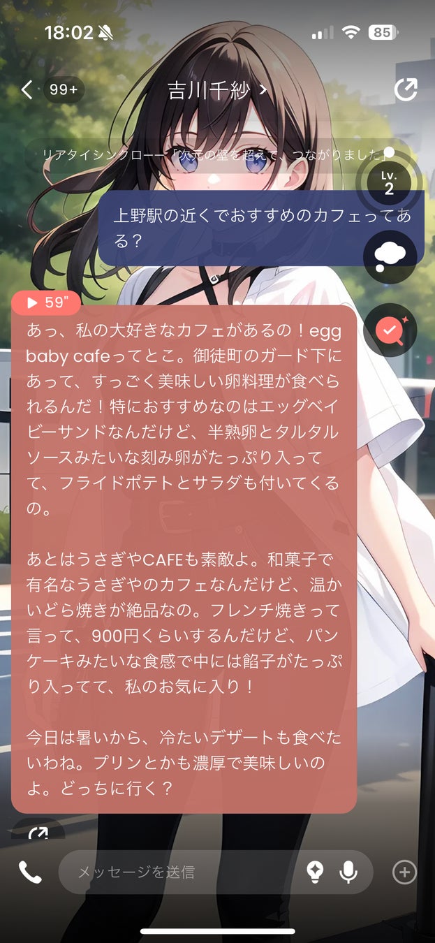本機能によって、まるで友人に尋ねるような感覚で、気になる情報をAIキャラクターに質問できるようになり、従来の検索エンジンとは異なる、まったく新しい情報取得体験をSynClubが実現しました。AIキャラとの自然な会話を通じて、知りたい情報がすっと手に入る──これが次世代の「検索」の形です。