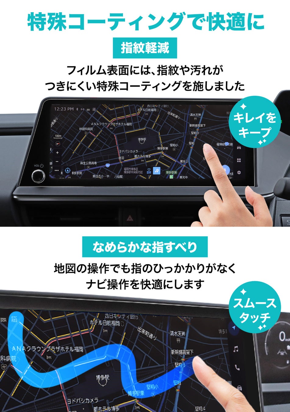 なめらかな指すべりを実現し、快適なナビ操作をサポートします。