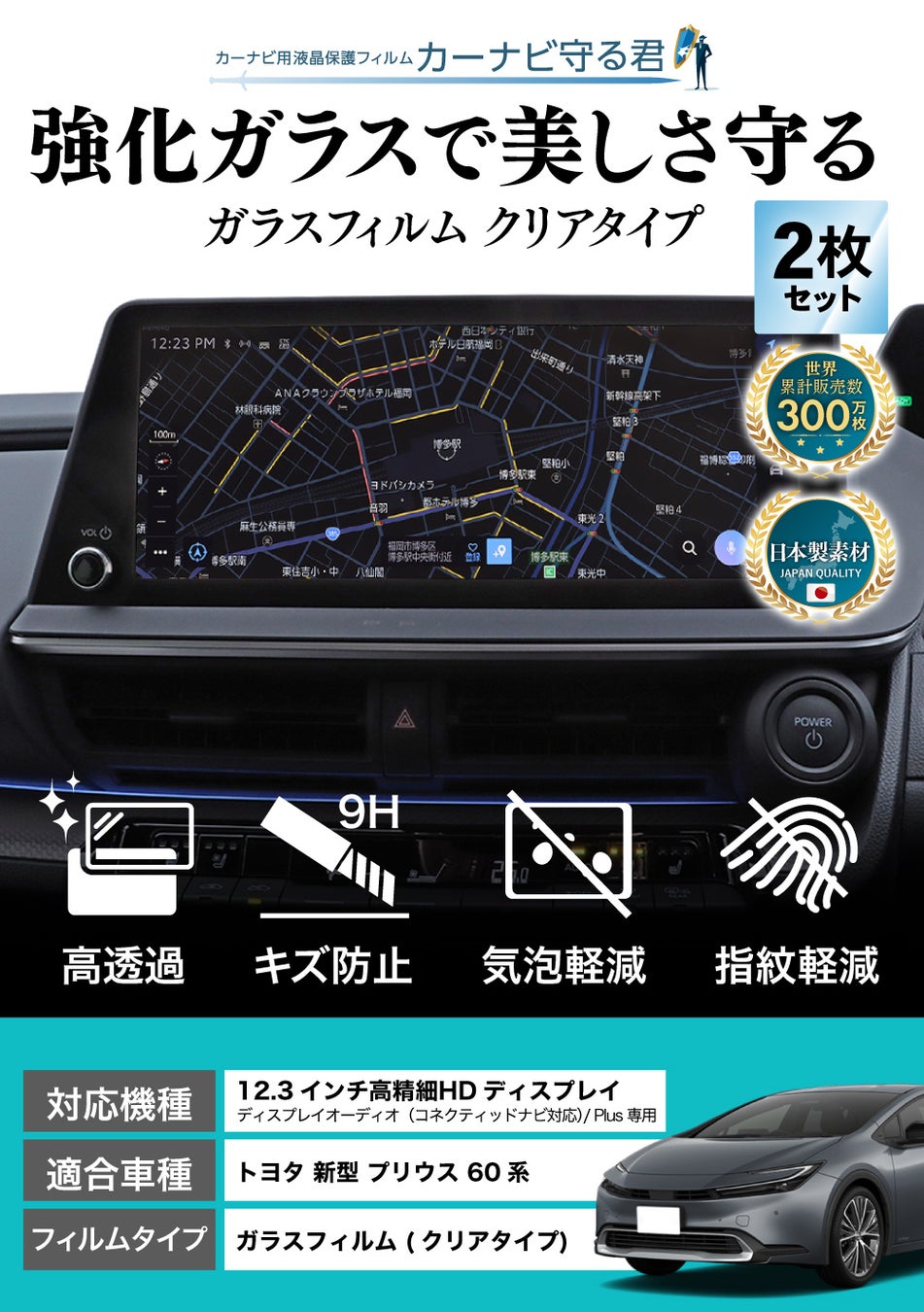 トヨタ 新型プリウス 60系の12.3インチカーナビ画面を傷や指紋から守る便利グッズ「カーナビ守る君 ガラスフィルム」内装カスタムにおすすめのアクセサリー。納車前の準備に