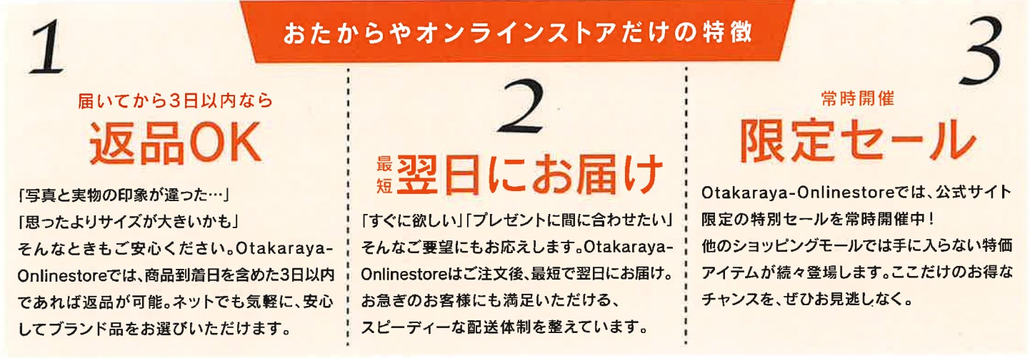 この経験とノウハウを活かし、お客様に本物のブランド品を安心してご購入いただくため、おたからや楽天市場店やYahoo!ショッピング店にてインターネット販売を行っております。