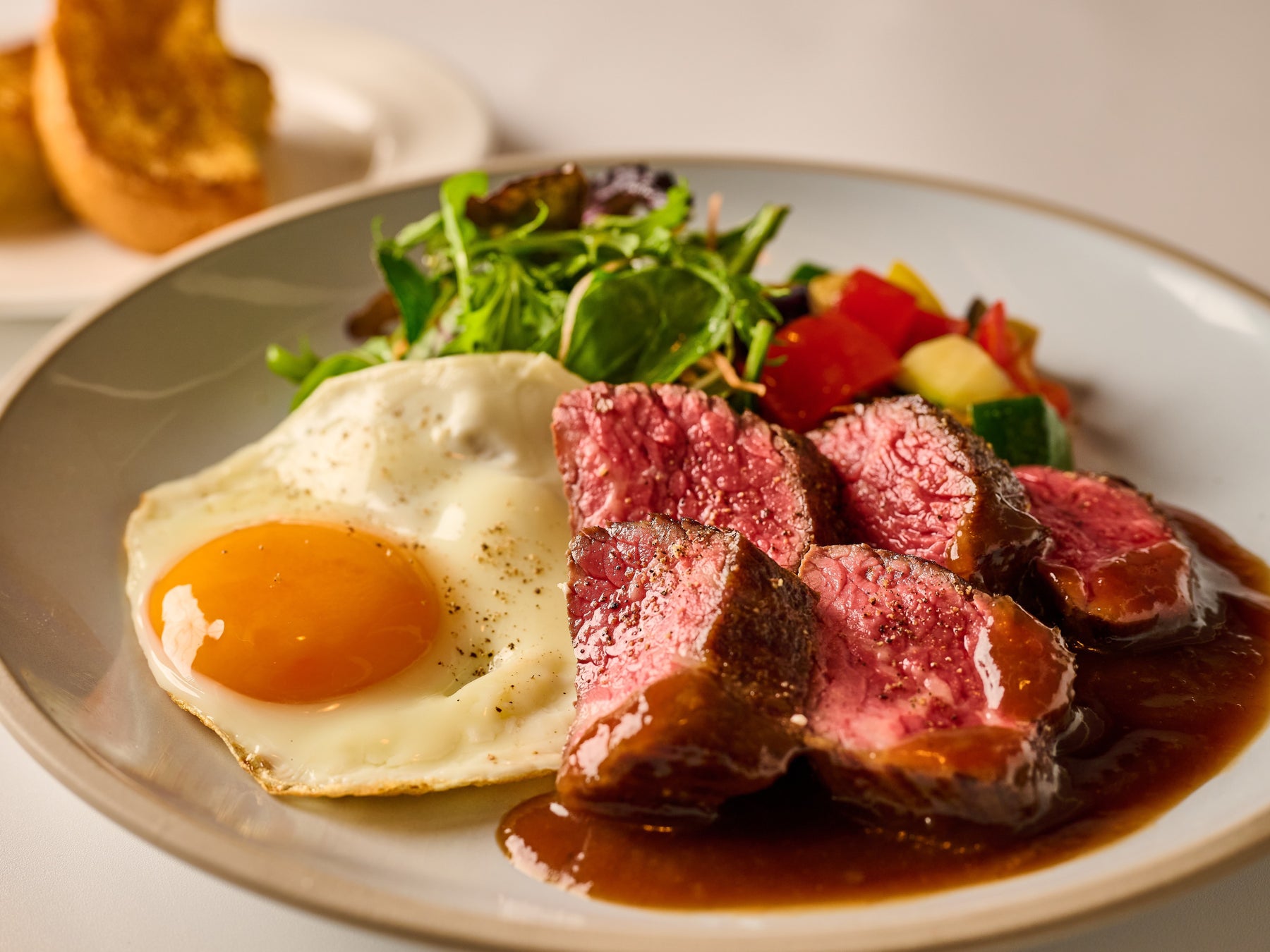 今回のリニューアルでは、よりご満足いただけるランチタイムをお過ごしいただけるよう、選べる5種のメインディッシュをご用意。メインディッシュには、丁寧に焼き上げたフレンチトーストや彩り豊かなサラダ、目玉焼きがついて、満足感のある内容となっています。