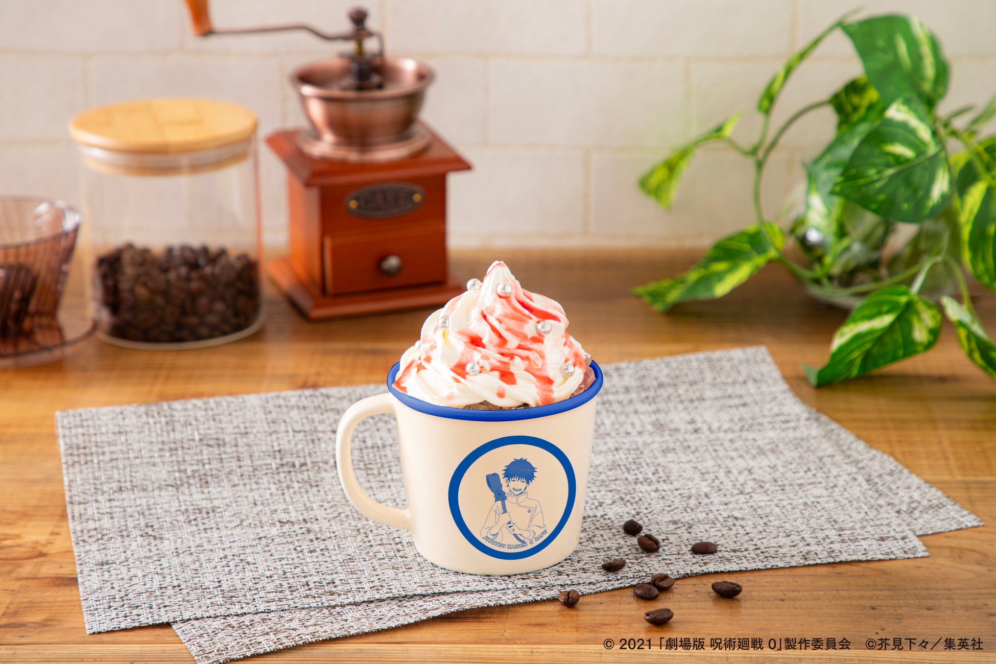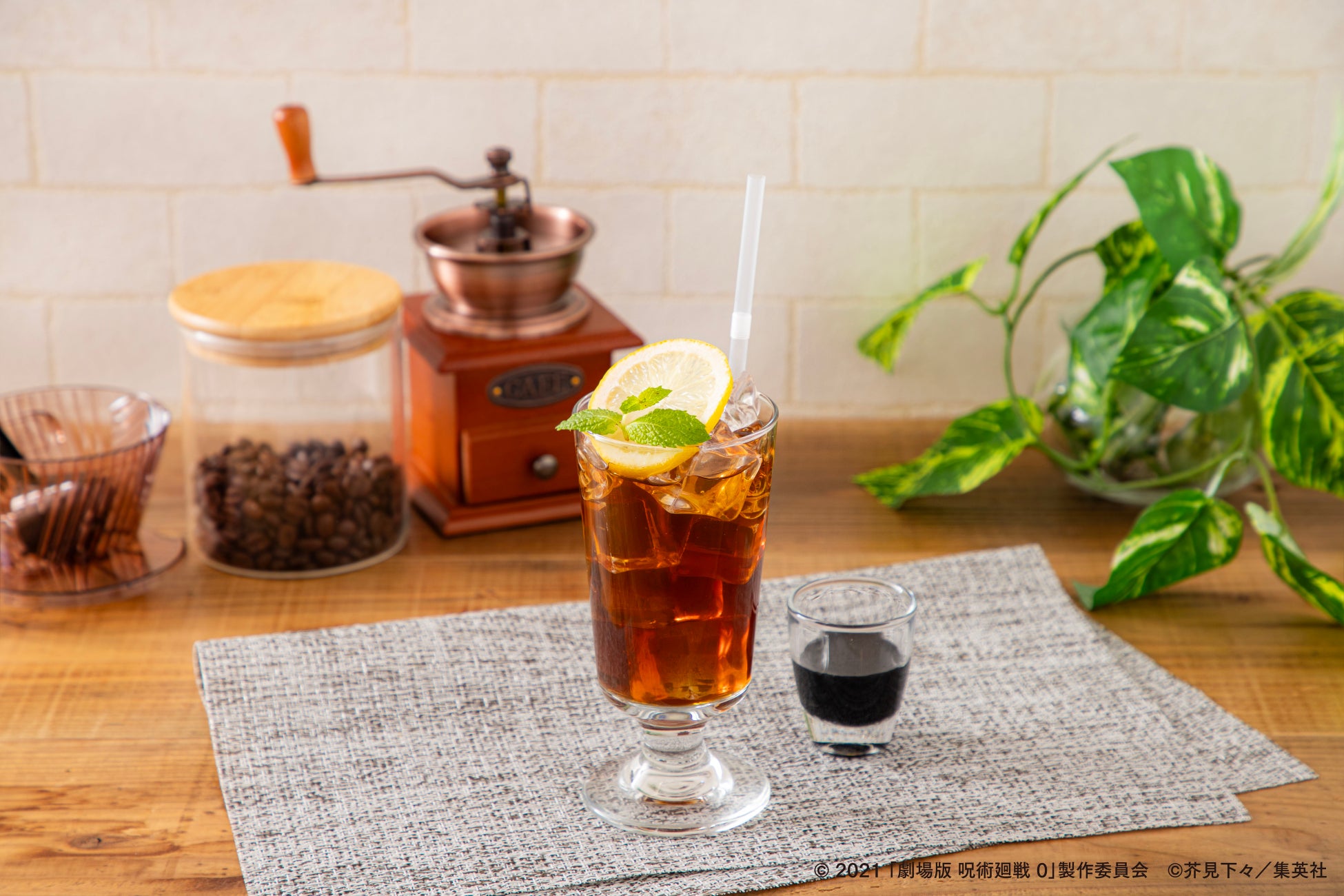 アイスコーヒーにホイップクリーム(白)とベリーソースを盛り付けて、乙骨と里香ちゃんのカラーを表現したドリンク。