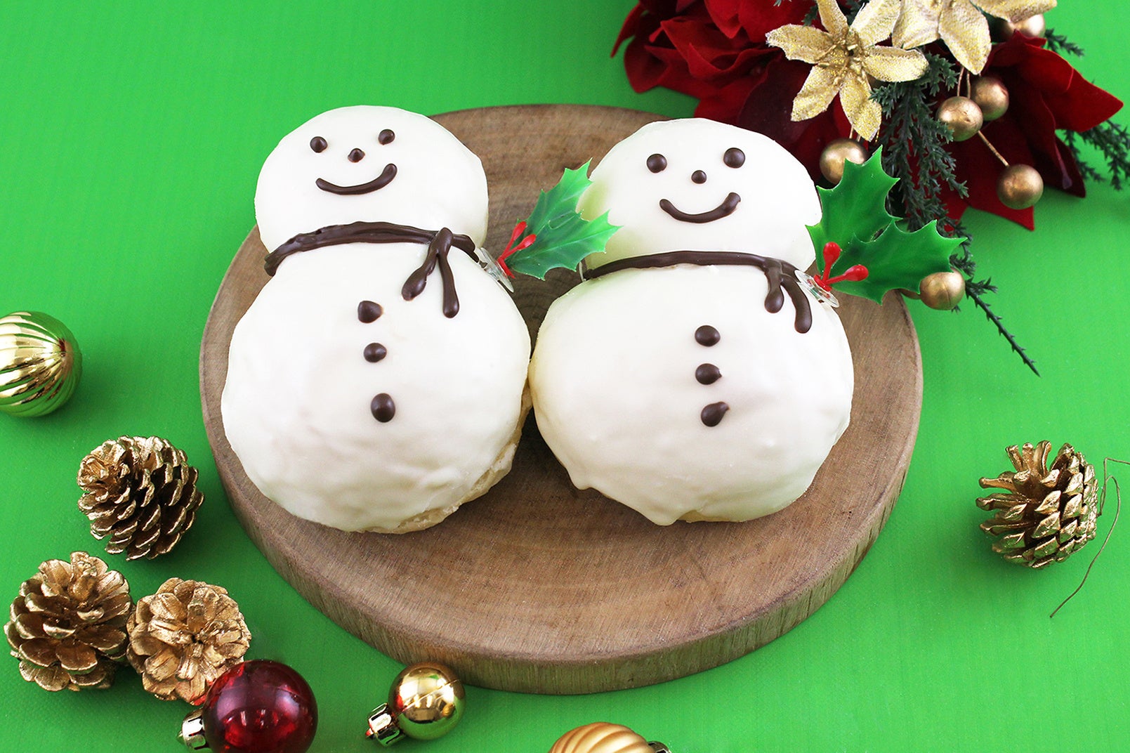 北海道練乳クリームをサンドした菓子パンにホワイトチョコをコーティングして、冬をイメージした雪だるまの姿に仕上げました。ホワイトチョコをまとった可愛いお顔に、甘~い練乳クリームが詰まった見た目も中身もスイートな一品です。