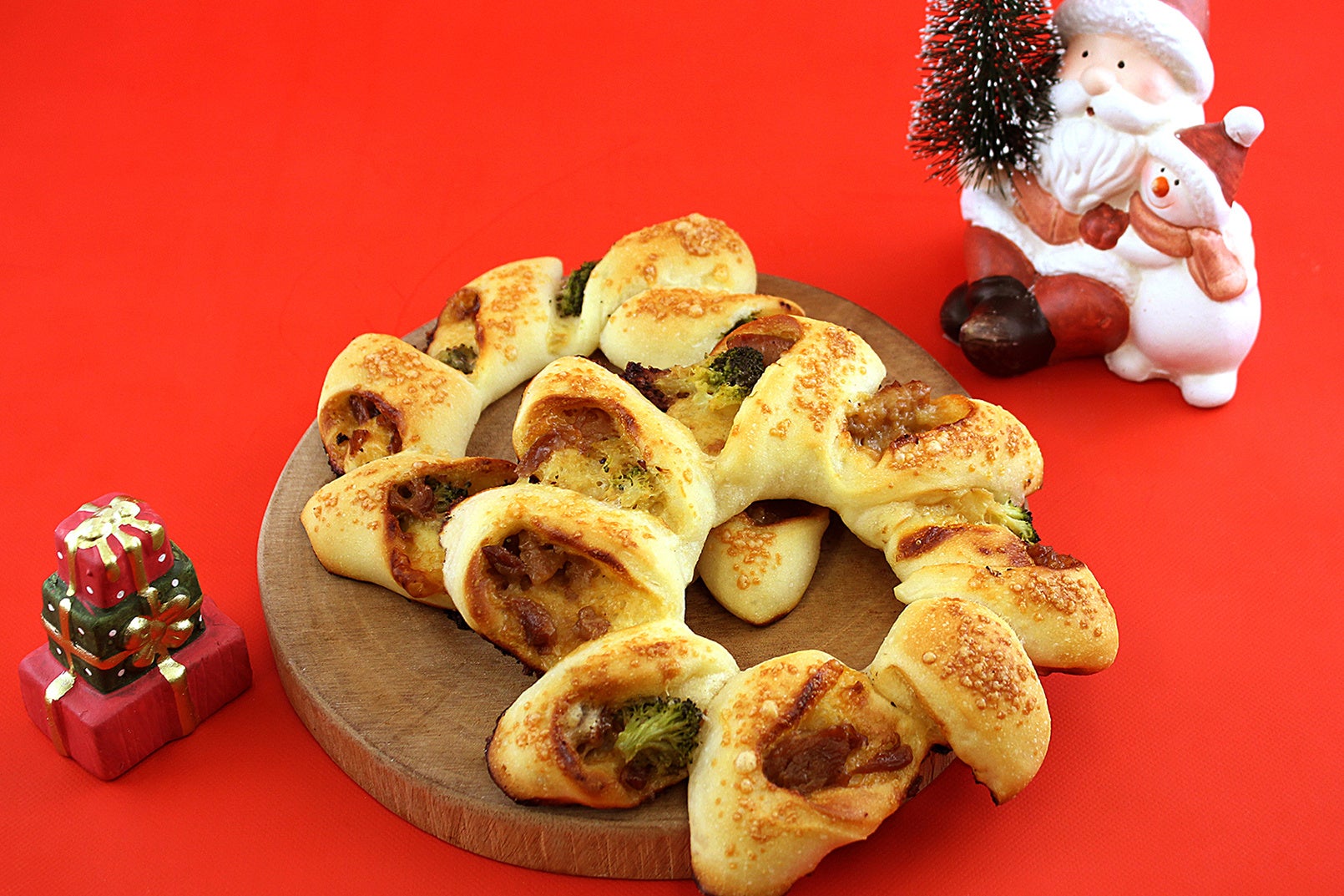 ルヴァン種とフランス・ロレーヌ岩塩を使用したフランスパンに照り焼きチキン、ブロッコリー、シュレッドチーズを包みリースの形に焼き上げました。甘辛なチキンと香ばしいチーズの旨味が食欲をそそります。
