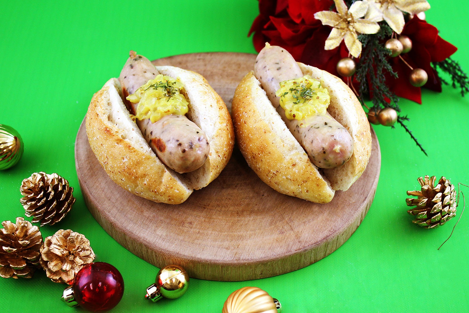ライ麦全粒粉入りフランスパンに、ハーブソーセージとマスタード風味の玉葱フィリングをサンドしました。カリっとしたフランスパンと大きなハーブソーセージは食べ応え抜群。ピリッと香るマスタードの風味がアクセントです。