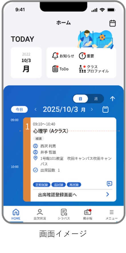 スマートフォンサイト/アプリのデザインを大幅に刷新しユーザビリティの向上を実現します。また、スマートフォンアプリから利用できる機能を大幅に拡張したことに加え、新たにデジタル学生証の機能をスマートフォンアプリに搭載することで、授業の出席確認・窓口での本人確認など学生の利便性向上を実現します。