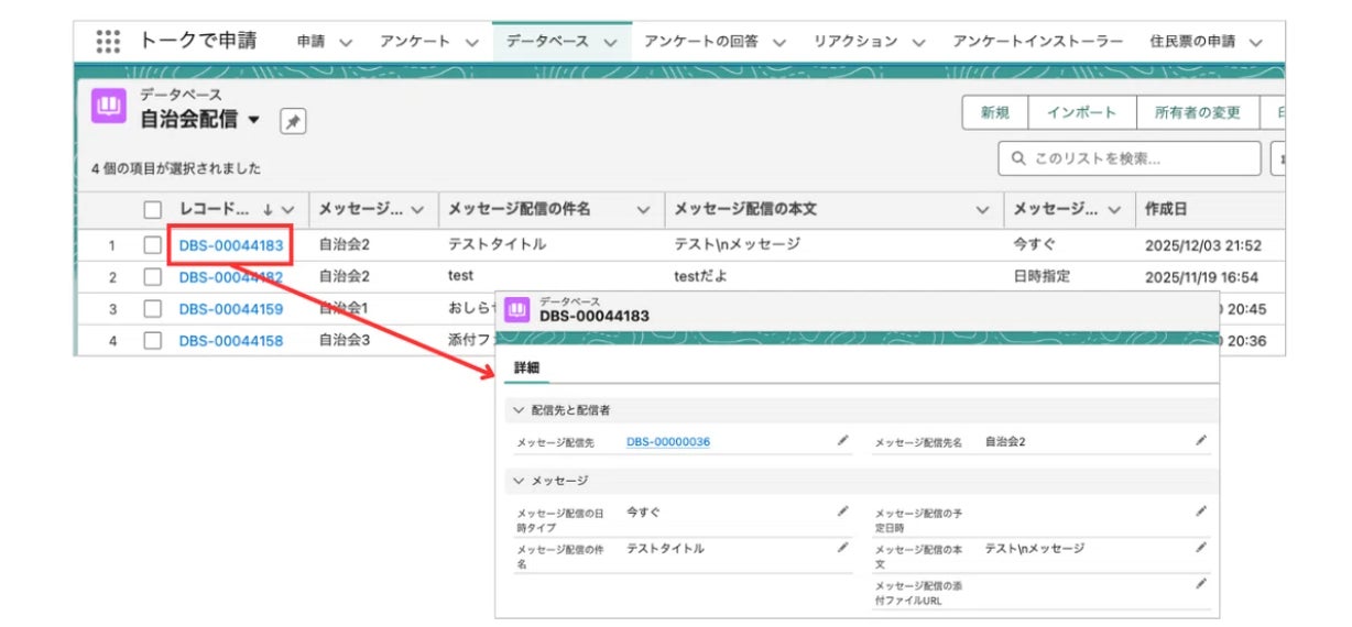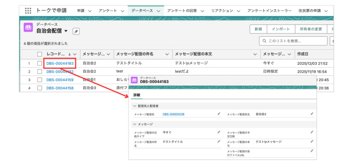 会員は所属する自治会で過去に配信されたメッセージを確認できます。