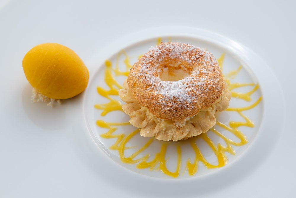 ▼パリ・ブレスト パッションフルーツとココナッツの爽やかなプラリネ マンゴーのソルベ