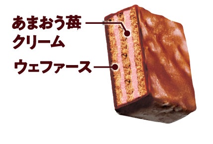 ・あまおう苺クリーム(2層)をサクサク食感のウェファース(3層)でサンドし、なめらかなミルクチョコレートでコーティングした5層のウェファースチョコレート