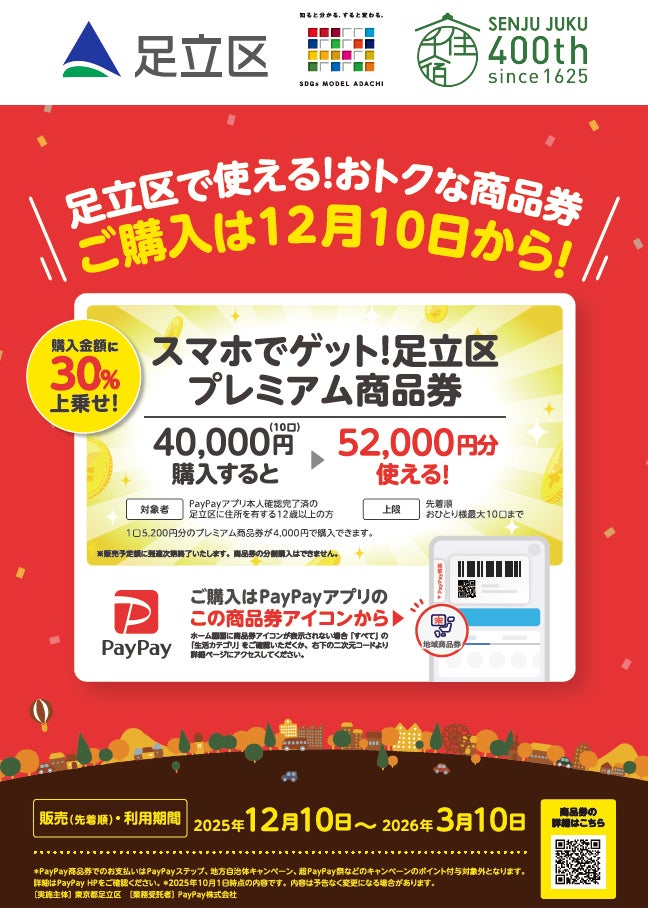 プレミアム率30%!PayPayで「足立区プレミアム商品券」の販売を12月10日10時から開始します