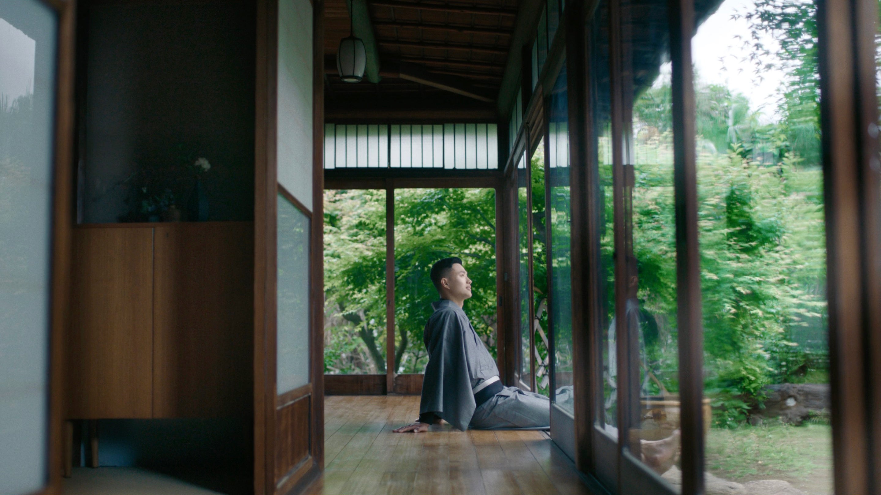 緑豊かな庭園に囲まれた日本家屋を舞台に、和服に身を包んだ武藤鉄也選手が縁側を歩くシーンからスタート。