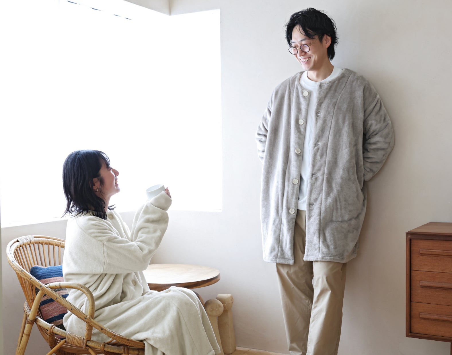 サッと着やすいガウン型で、寒い冬のおうち時間にずっと毛布に包まれているような暖かさを届けてくれます。