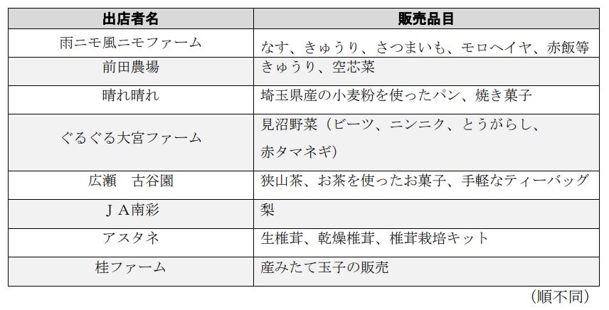 3年ぶりの開催となる今回は、さつまいもや梨など旬の農産物を県内各地の生産者が直接販売します。また、狭山茶や県産小麦粉を使ったパンなどの加工品も販売予定です。