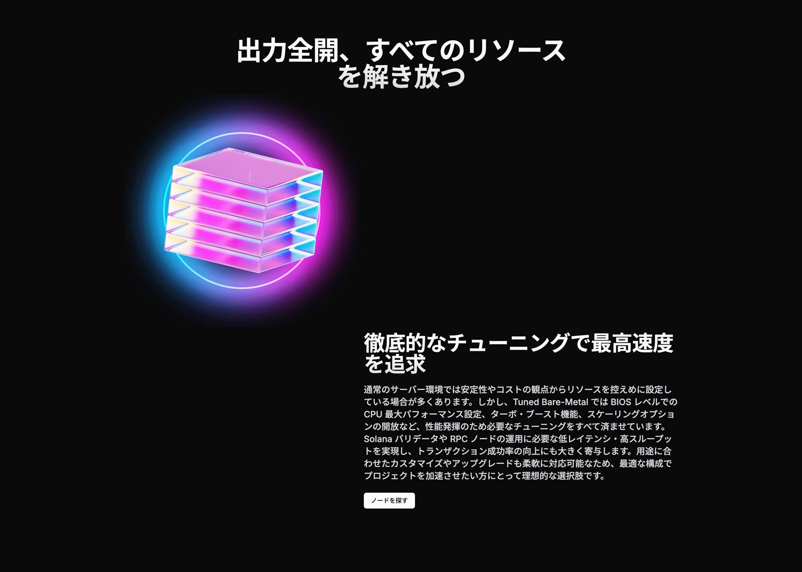 新サービス「Tuned Bare-Metal」を公開。サーバーリソースを最大限まで引き出し、Solana バリデータや RPC の安定高速稼働を実現