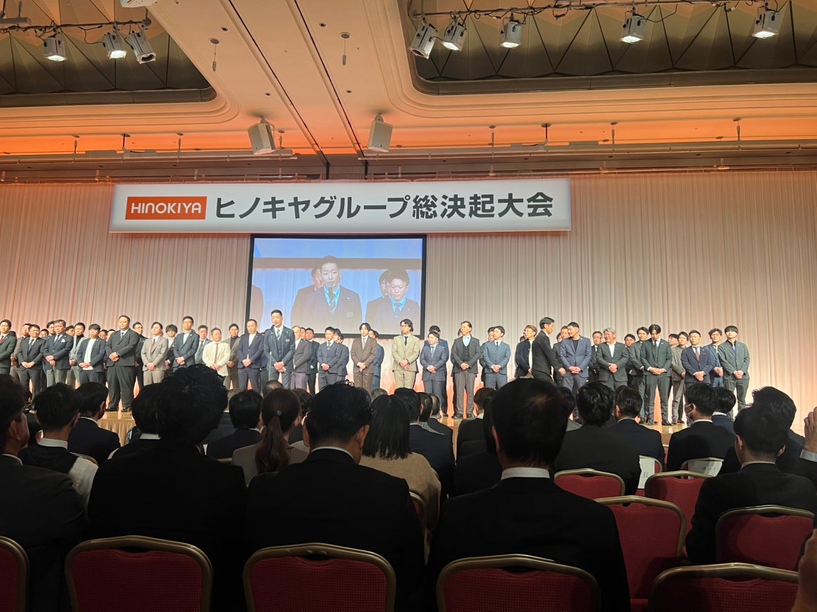 ヒノキヤグループ総決起大会は、グループ全体の方針共有や成果報告を行うとともに、優れた実績を残した社員を称える年に一度の重要なイベントです。全国各地から関係者が集まり、住宅業界の第一線で活躍する担当者や店舗の功績が発表されます。