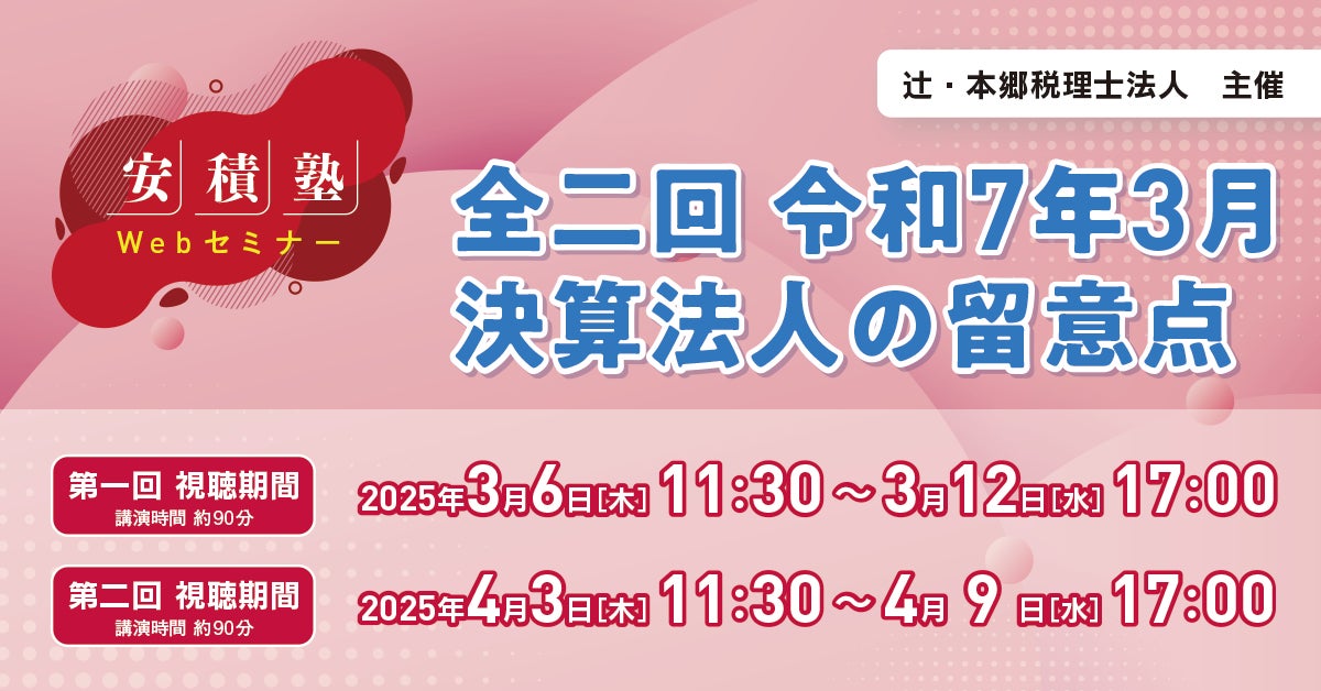 「【安積塾】全二回 令和7年3月決算法人の留意点」Webセミナー開催