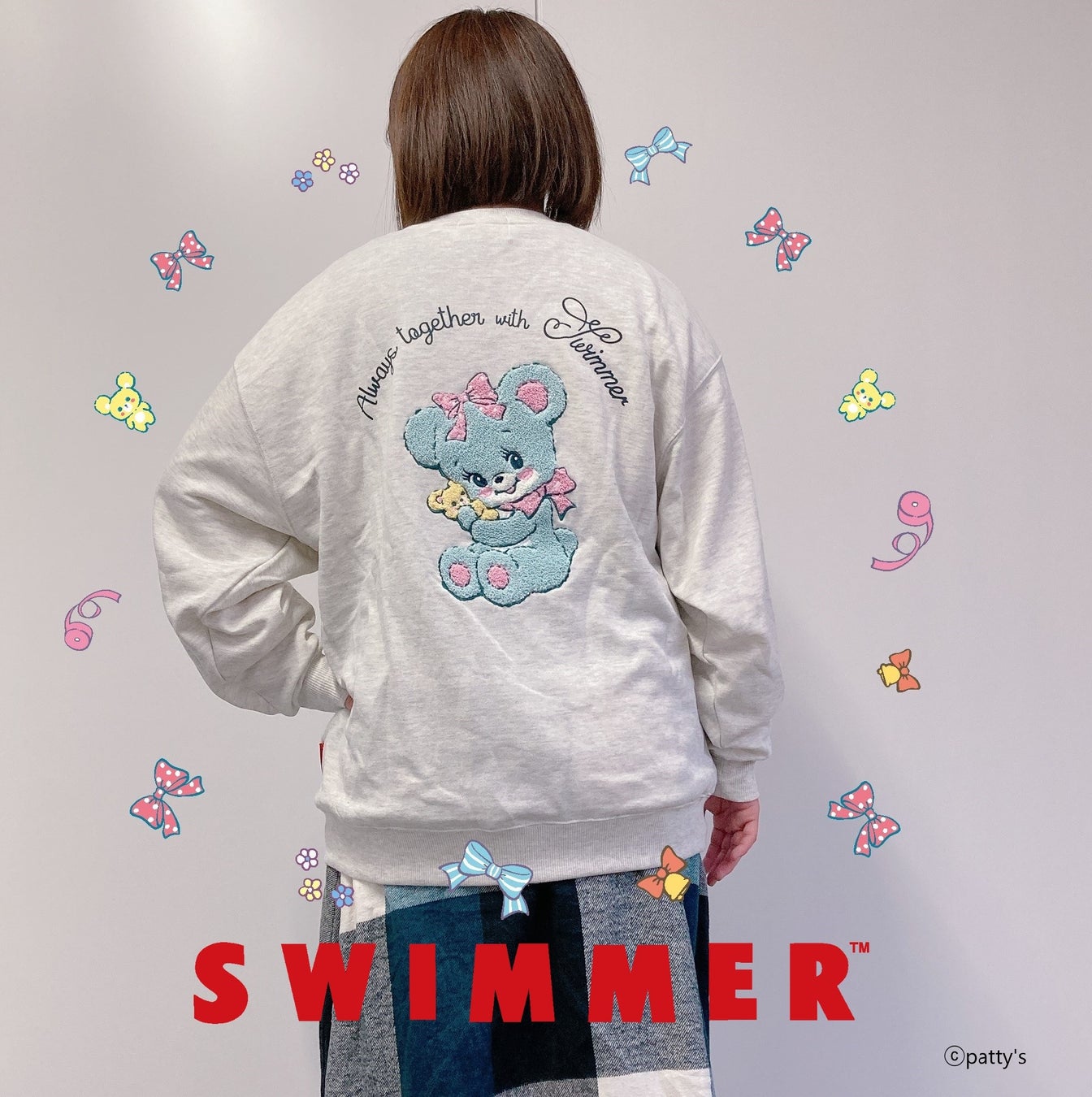 表面はワンポイント刺繍、背面はSWIMMERキャラクターのサガラ刺繡♡