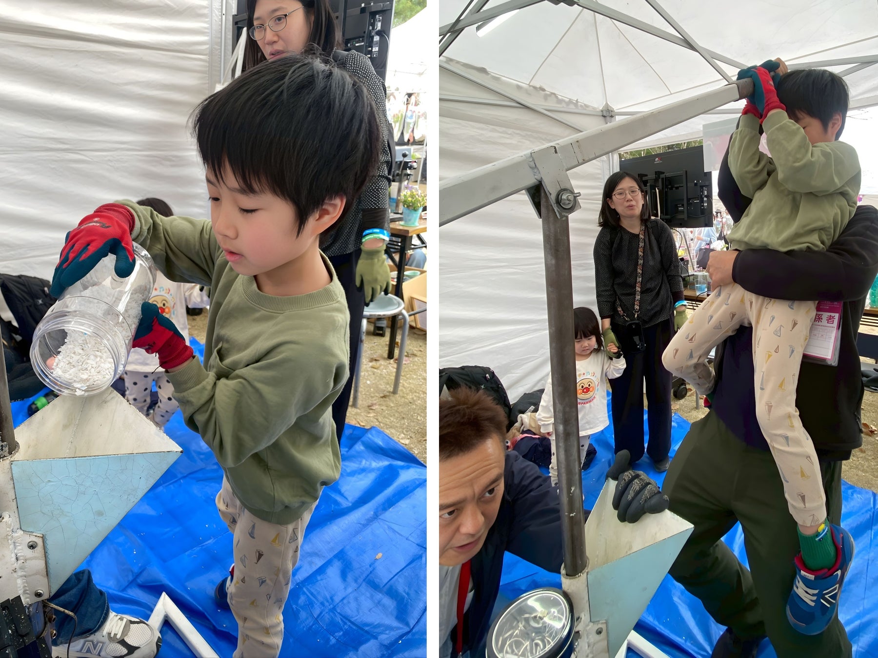 ワークショップでは子どもから大人まで約30名が参加。キャップを機械に投入し、熱で溶かして成形する工程から体験した参加者からは「自分でアップサイクルした鉢に植えられて嬉しい」という声が上がりました。