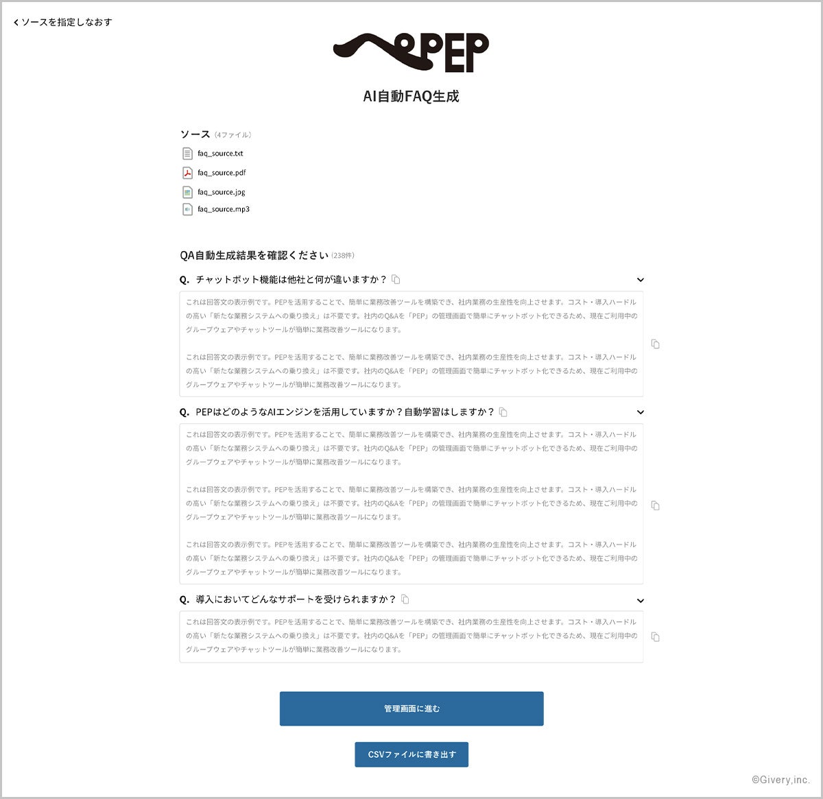 “国内初”ギブリーがChatGPT技術と連携し社内マニュアル等からFAQを自動生成するAI-FAQサービス「PEP GPT」をリリース。