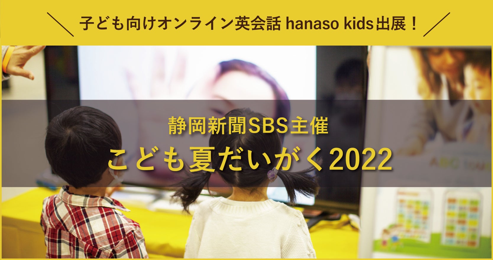 株式会社アンフープ(所在地:静岡県富士市、代表取締役社長:重森 渉)がサイト運営する、無料通話ソフトSkype(スカイプ)またはZoom(ズーム)を利用した子ども向けオンライン英会話「hanaso kids」は、2022年8月6日(土)7日(日)の2日間、「こども夏だいがく」に出展します。イベントでは、前回のこども冬だいがくで大盛況をいただいたhanaso kids外国人講師による『英語クイズ』を展開します。
