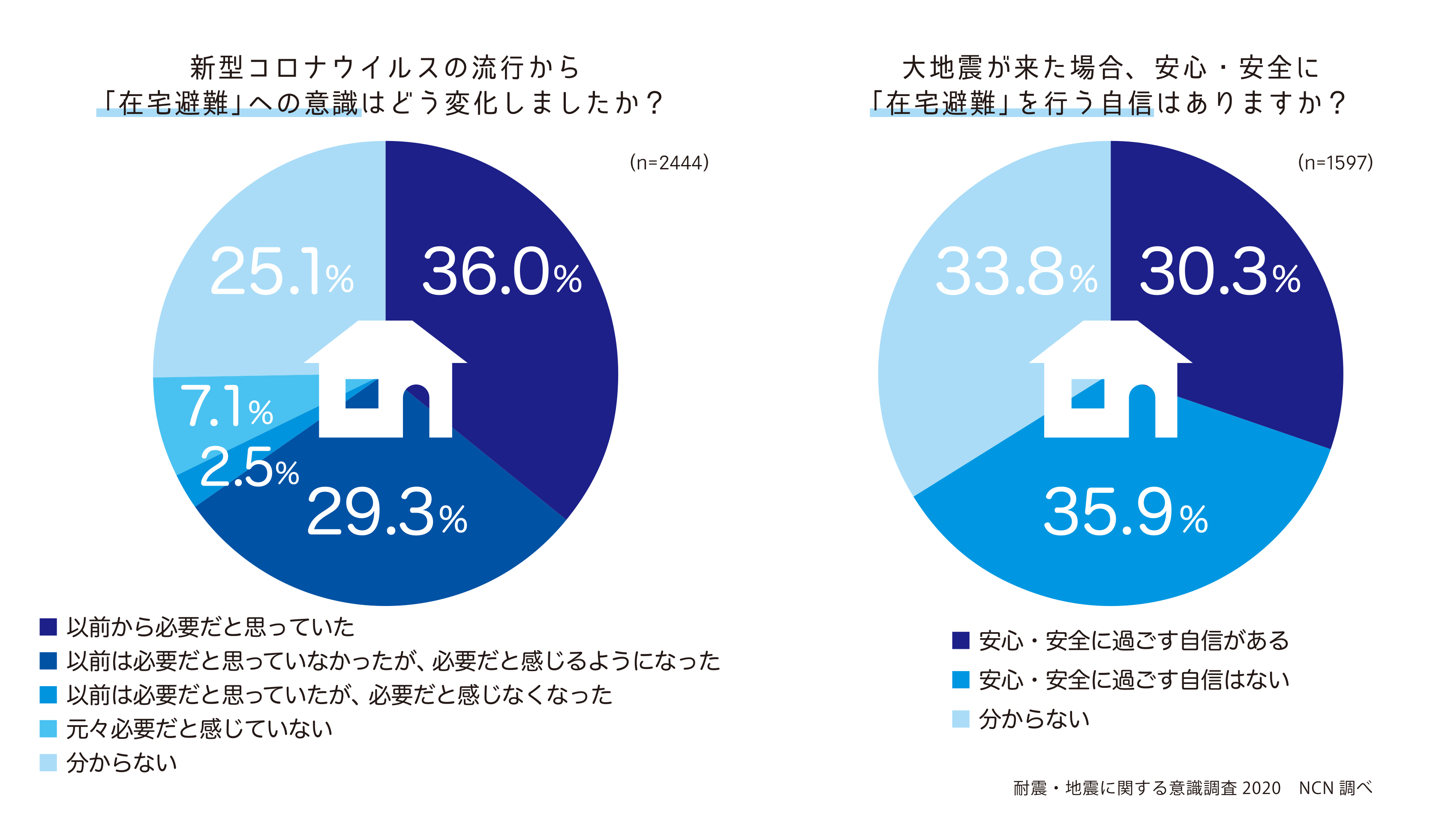 注目集まる在宅避難、「必要性を感じる」約65%も「自宅で安全・安心に過ごす自信がある」人は約30%止まり。 耐震意識の高い「耐震県」、2020年の1位は愛知、47位は長崎に