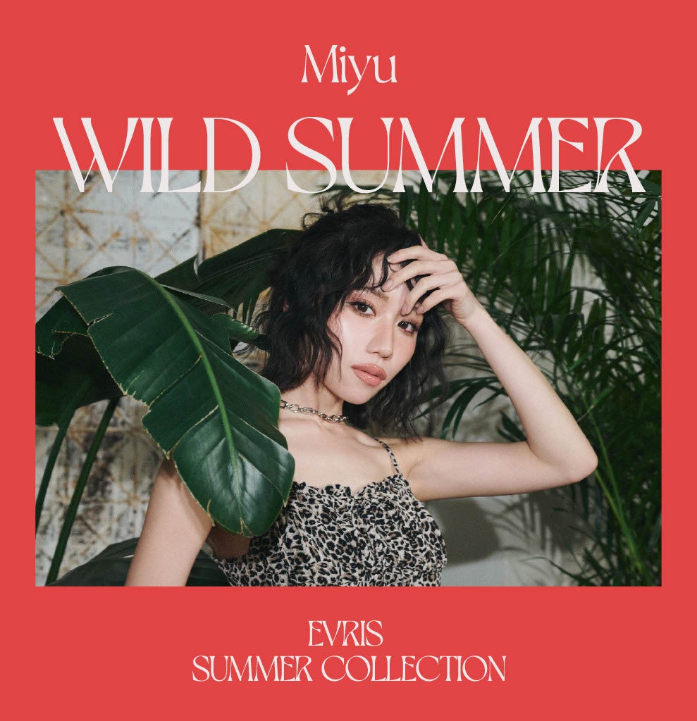 今季一押しのレオパード柄のワンピースは90年代を彷彿とさせるチェック柄のアイテムです。着るだけで気分が上がるビジューアイテムなど、みゆさんが着こなすヘルシーな肌見せや、EVRISらしいエッジの効いたこの夏のトレンドをつめ込んだ全10スタイリングをお楽しみください。