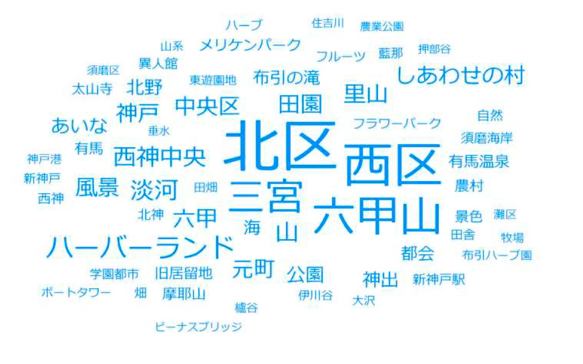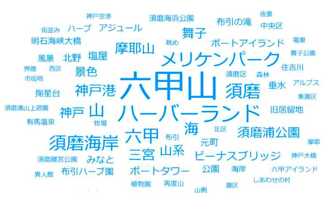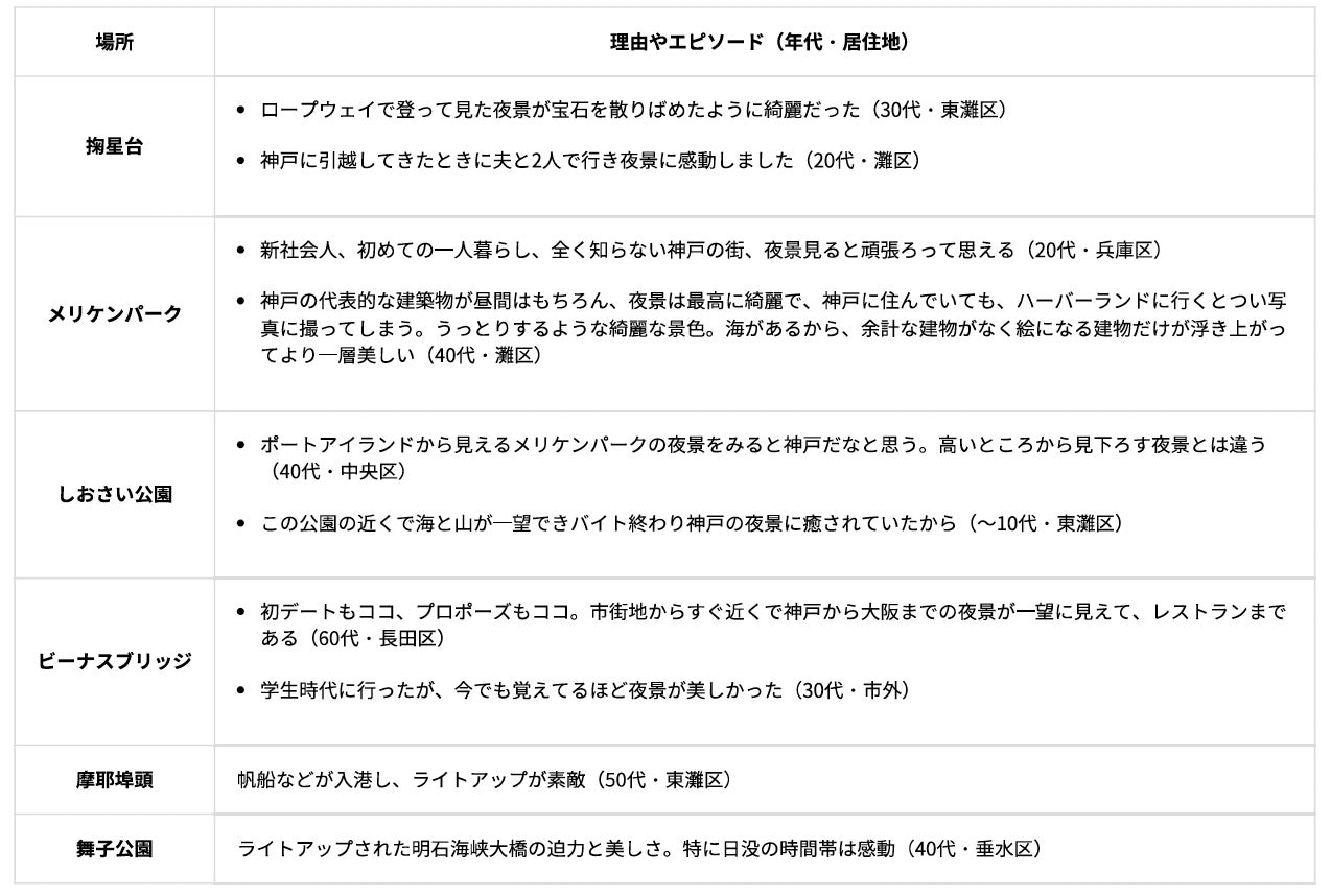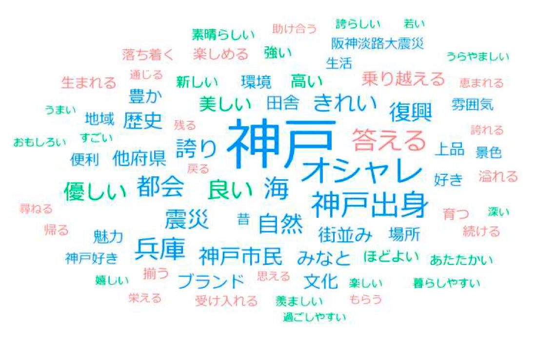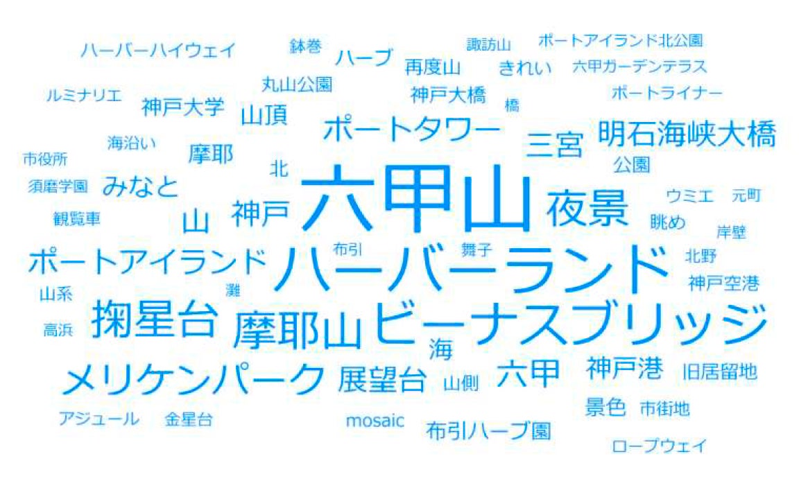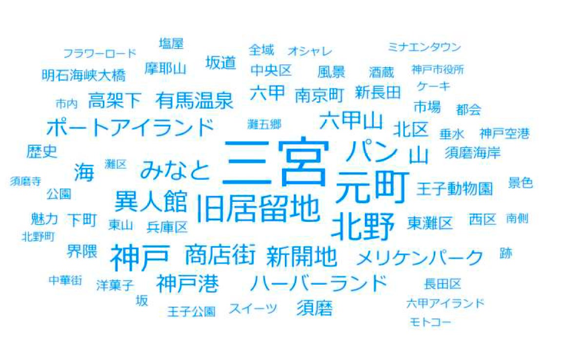 アンケートは選択式の設問である「神戸の『まち』の魅力といえば?」と、記述式の「それぞれの『連想する場所』と『理由・エピソード』を聞くアンケートを実施しました。