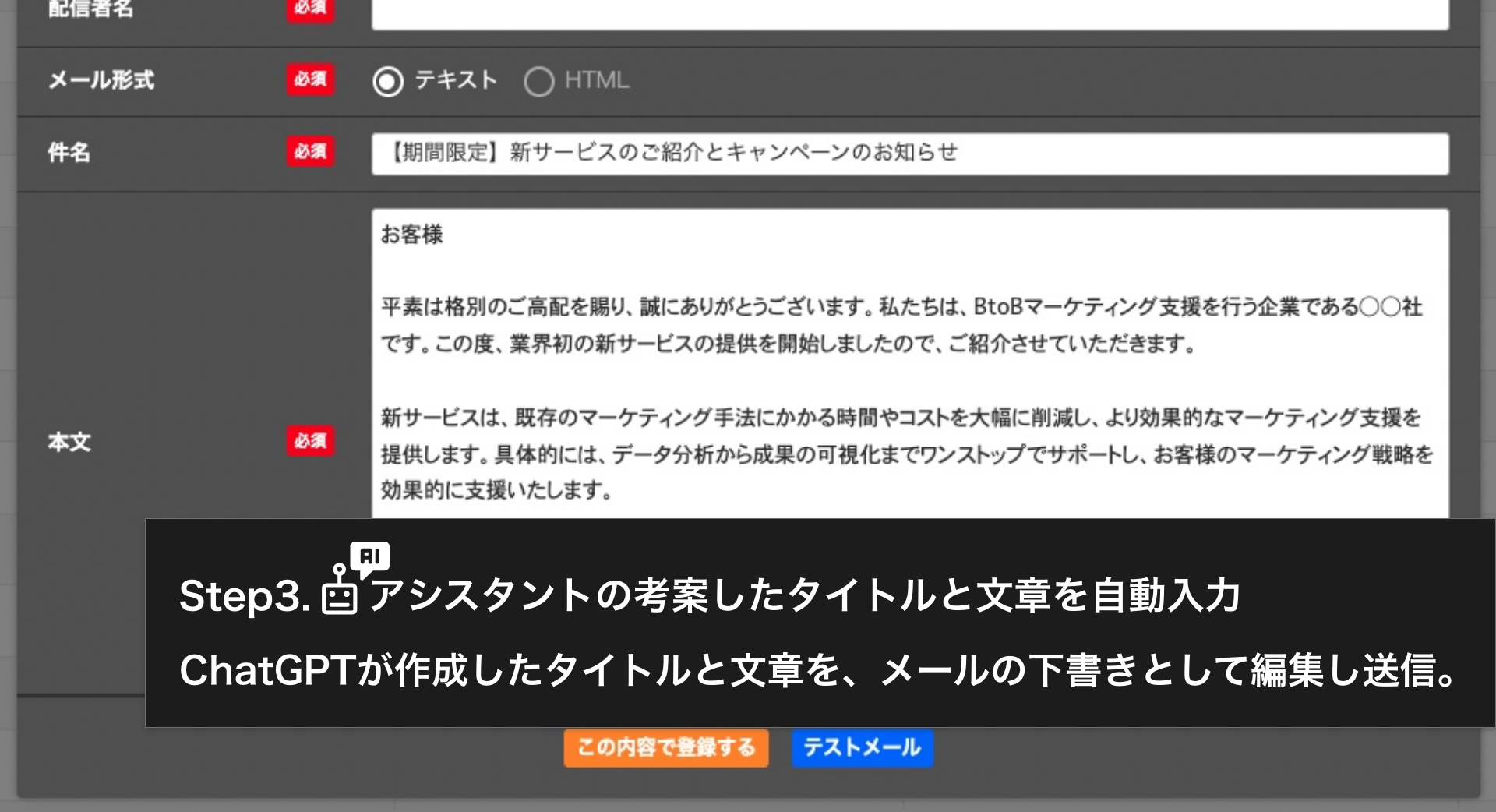 ・メールタイトルや本文が簡単に作成できる
