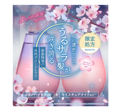 「hiritu」は、美しい髪の黄金比率※3【たんぱく質80%・水分15%・油分5%】に着目。限定のヨイノハナシリーズは、紫外線・花粉による外的ダメージや寝ている間の摩擦ダメージから髪を守り、翌朝までなめらかなうるサラ髪へ導きます。香りは「さくら&ラズベリー」を採用。甘さのあるラズベリーに上品なサクラやフリージア、ジャスミンがやさしく香るフルーティーフローラルな香りをお楽しみください。