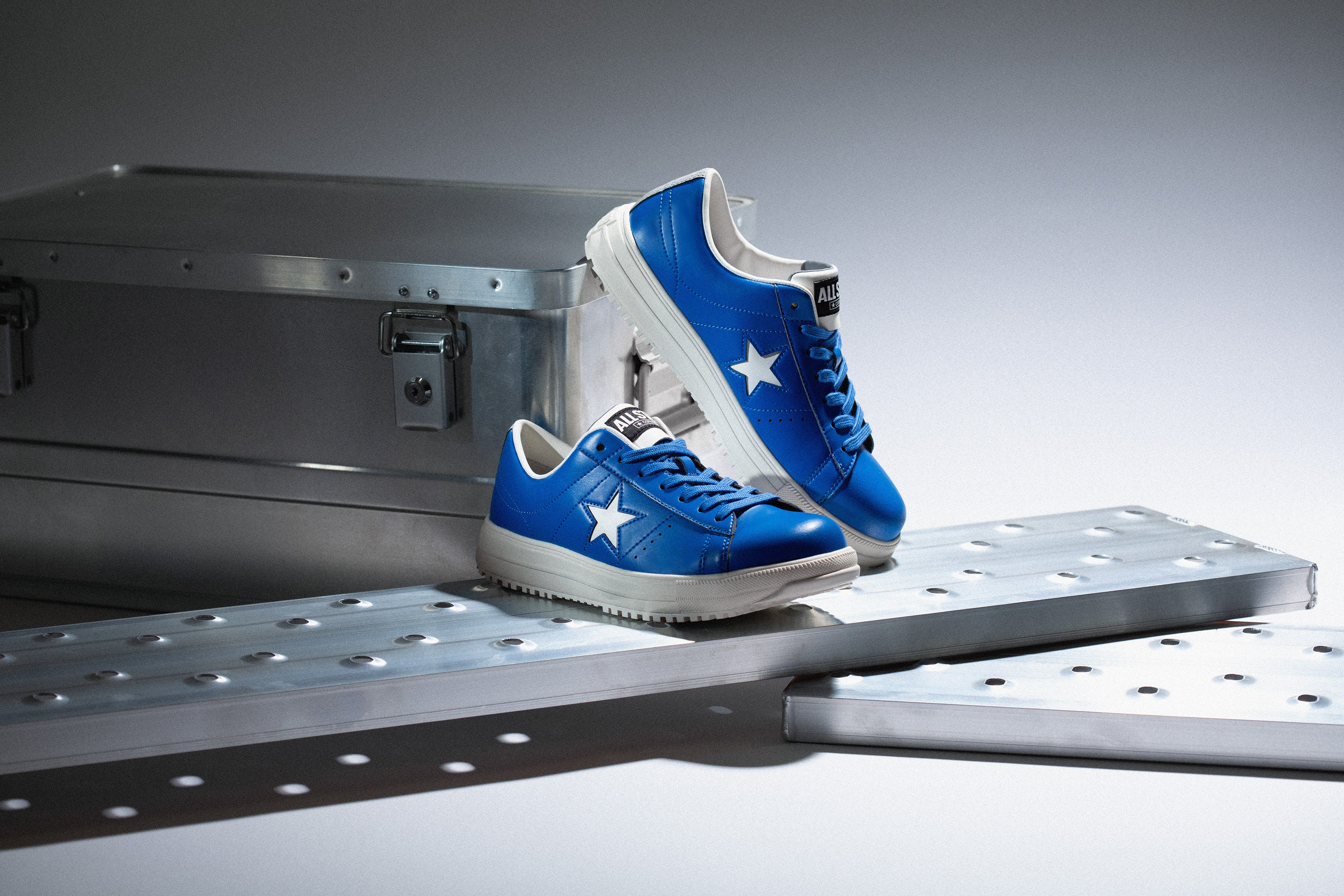 1974年に誕生したコンバースを代表するアイコン「ワンスター」のデザインを踏襲した、プロテクティブスニーカー。ワークシューズとして求められる安全性を備えながら、色鮮やかなブルーをアッパーに採用し、スタイル性も意識した一足に仕上げています。踵部裏面にはクッション性を向上させるE.V.A.パーツを搭載し、長時間の着用にも配慮。 アッパーには軽量で耐久性に優れたクラレ社のクラリーノを使用し、JSAA A種認定の基本スペックを搭載しています。
