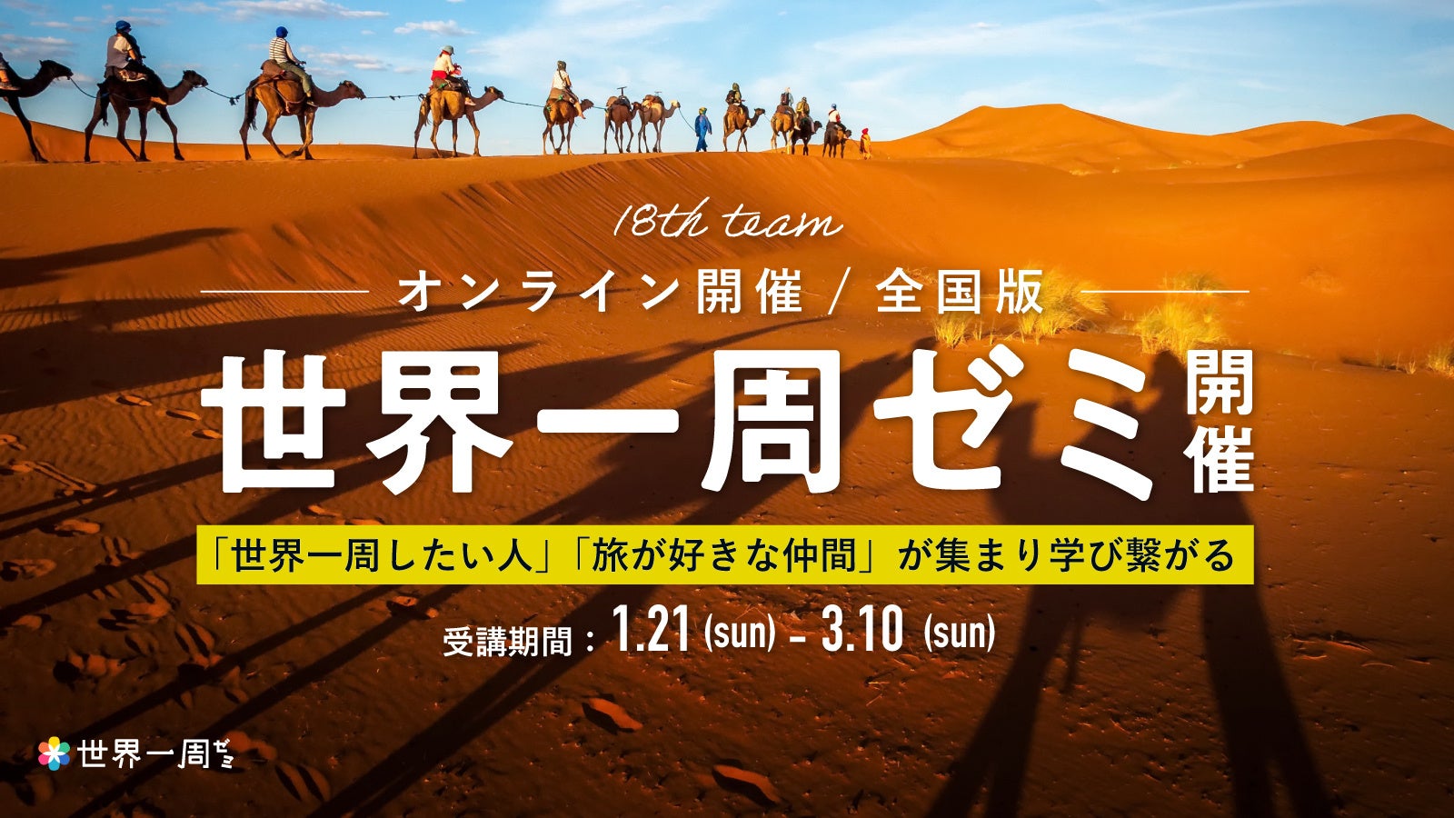 世界一周をしたい人に向けたTABIPPOの人気講座「世界一周ゼミ」の18期を開催します。世界一周ゼミは、世界一周をしたい20〜30代の若者が本気で世界一周について考える日本で唯一のゼミです。