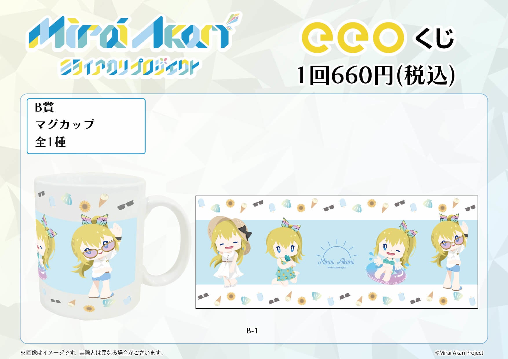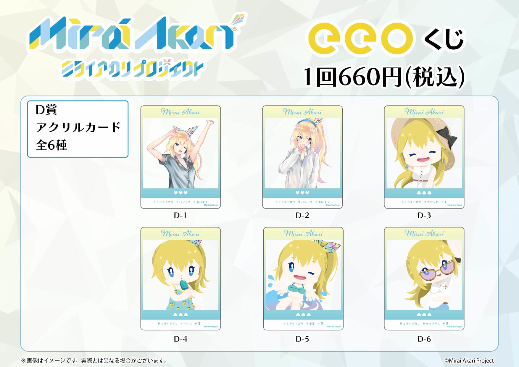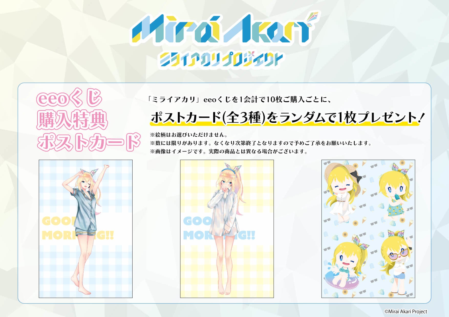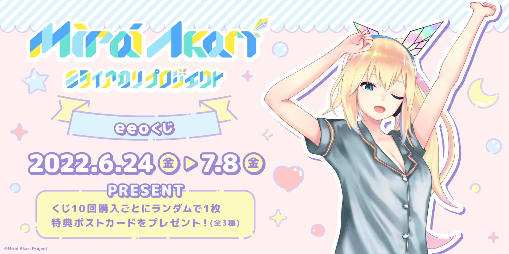 大人気VTuber・ミライアカリのオンラインくじ『eeoくじ』が発売決定!ミニキャライラストなど豪華グッズが勢ぞろい
