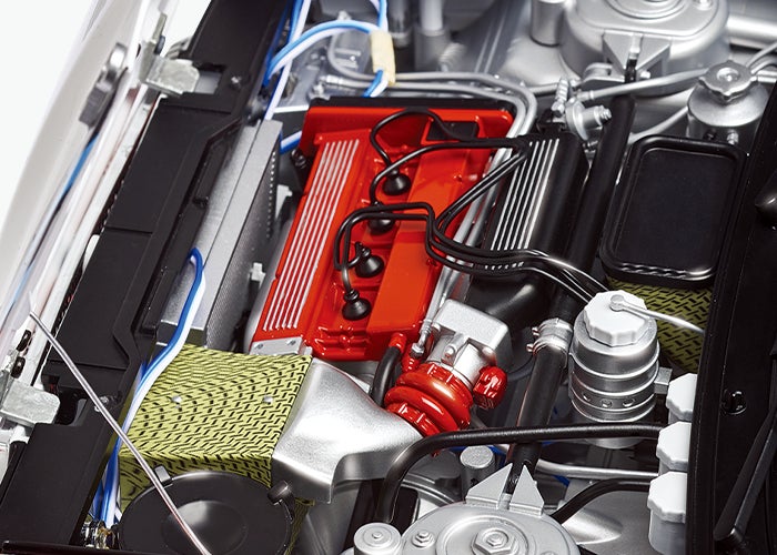エンジンやエアロパーツをはじめシートやロールバー、ダッシュボード、ボディを彩るマルティーニ・レーシングのデカールなど細部にわたり実車に忠実に再現!エンジンサウンド&クラクション、前後ライト&ブレーキライトの音と光のギミックもリアルに仕上がっています。