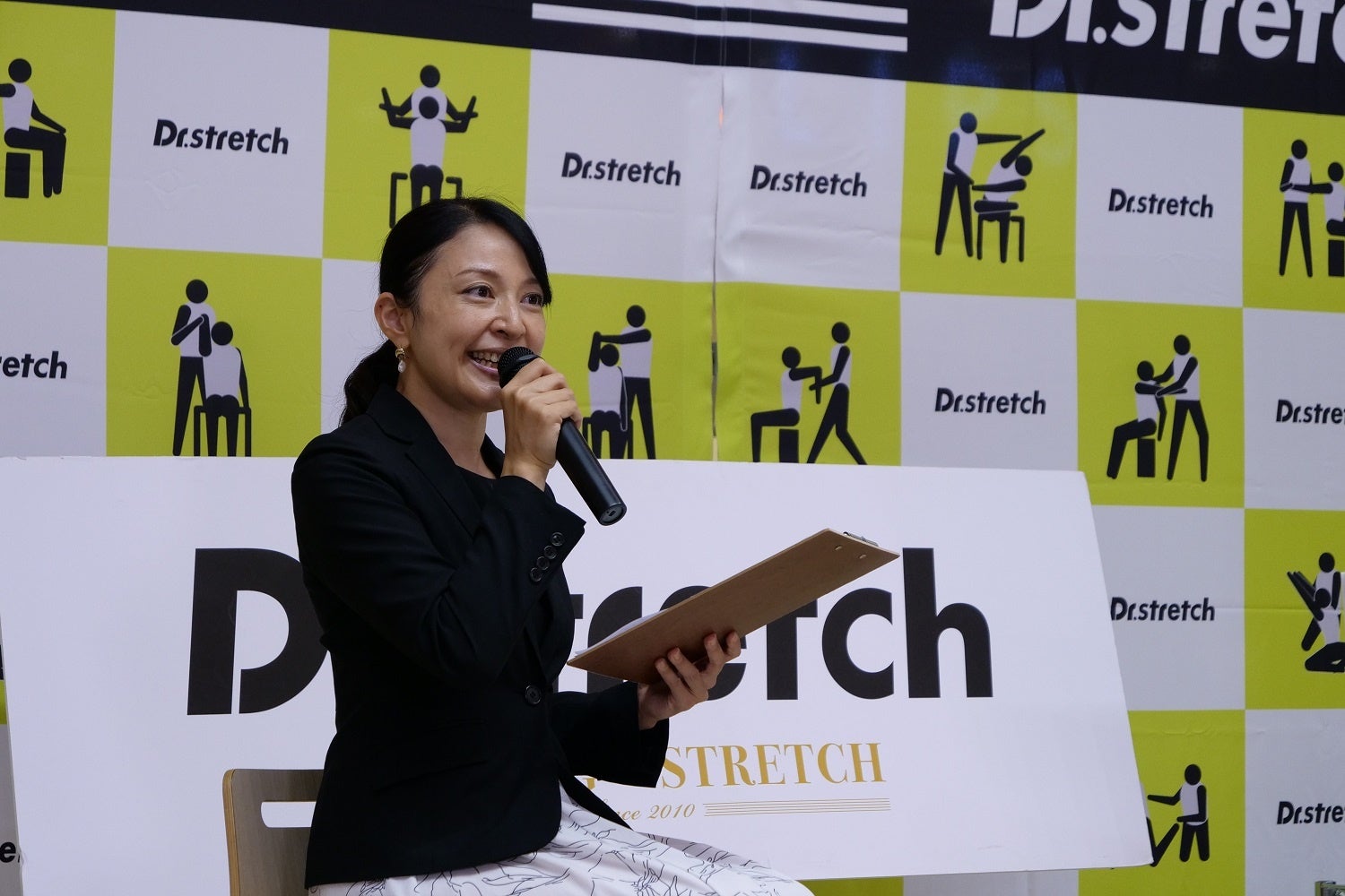 一方、Dr.stretchの小林グランドトレーナーは、ブーツを履く機会も増えるこれからの季節にあわせて、足のむくみ予防のストレッチを紹介。実際にDr.stretch店舗で提供している「大腿四頭筋」「下腿三頭筋」「大殿筋」のパーソナルストレッチを披露しました。体験した参加者からは「ストレッチをした際に血流の流れがよくなるのを実感して、脚がすごい軽くなりました!」とストレッチ効果を実感し、驚きの声が上がりました。