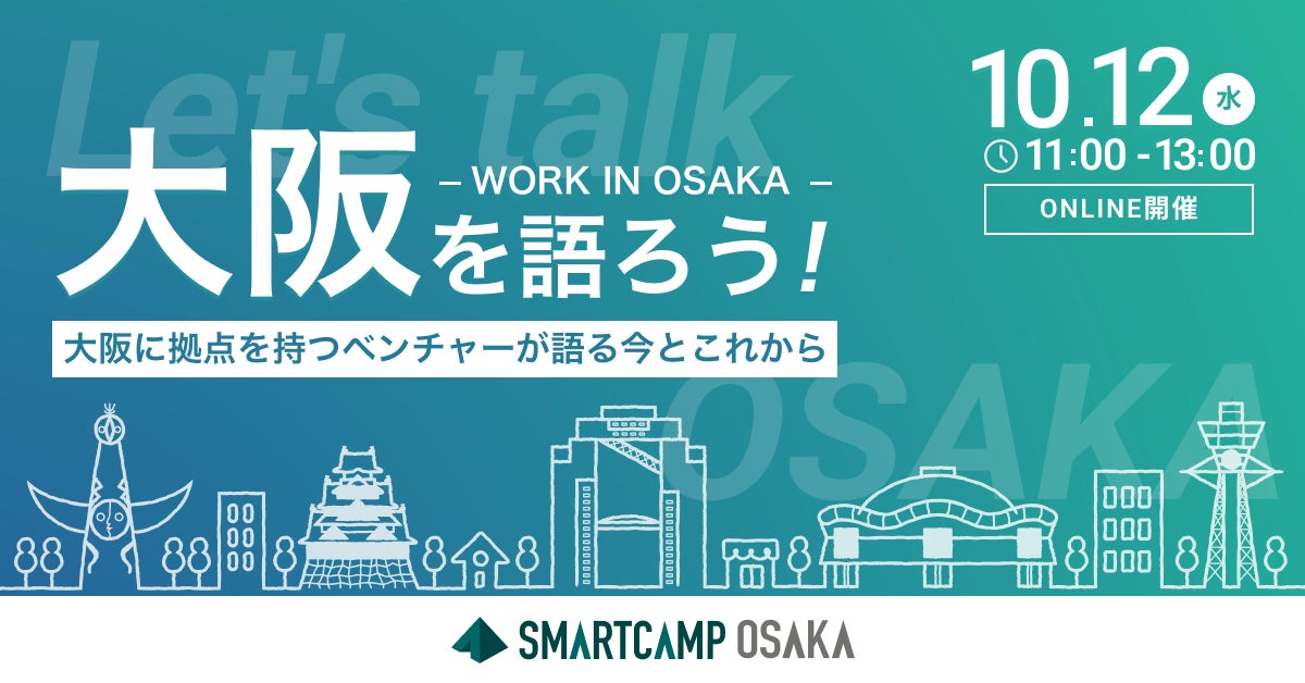 スマートキャンプ株式会社(本社:東京都港区、 代表:古橋智史、林詩音、以下「スマートキャンプ」)は、2022年10月12日(水)に、大阪に本社や拠点を持つ企業と共同で開催する無料オンラインイベント「大阪を語ろう!- WORK IN OSAKA -」の全登壇者が決定したことをお知らせします。