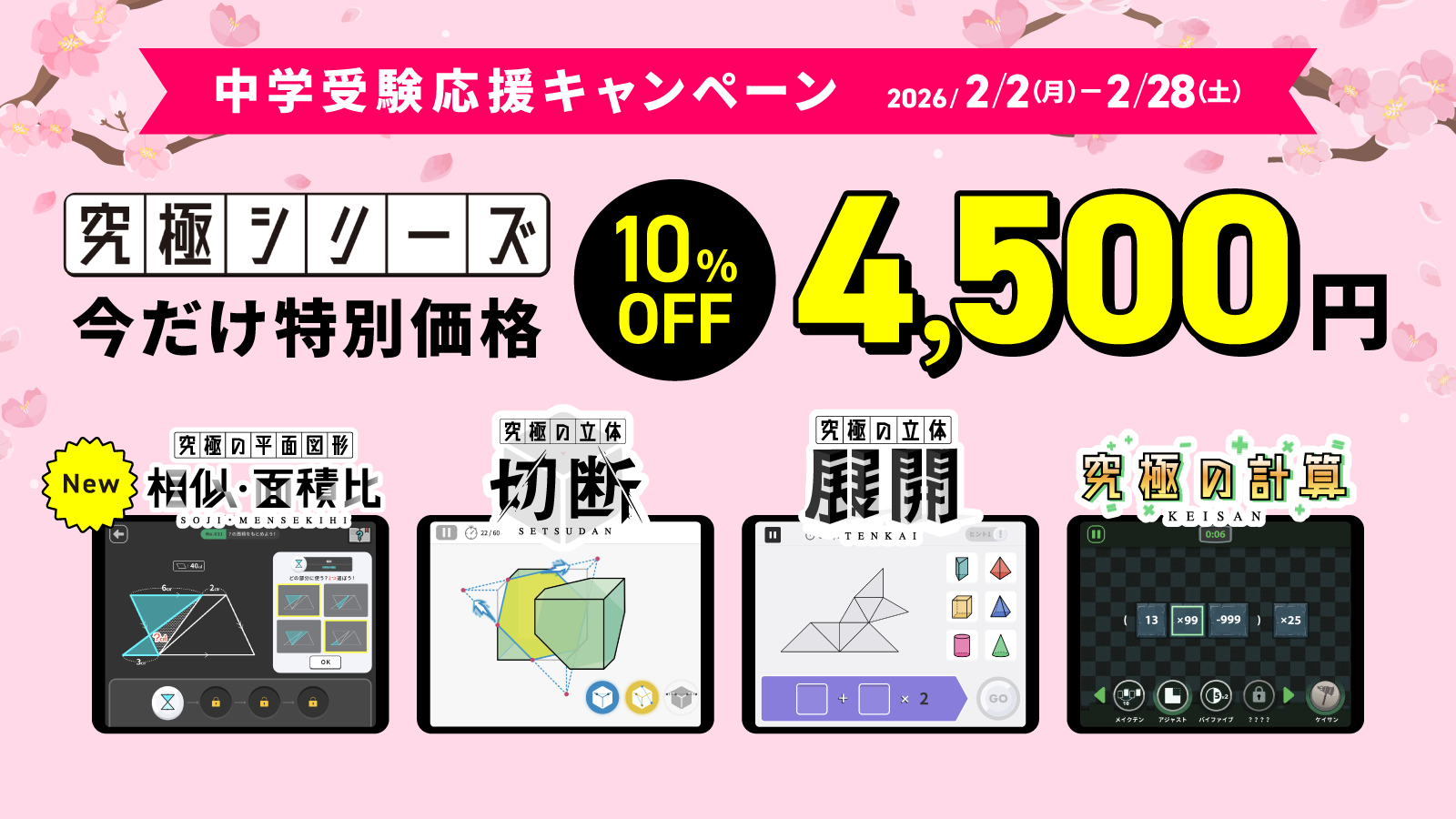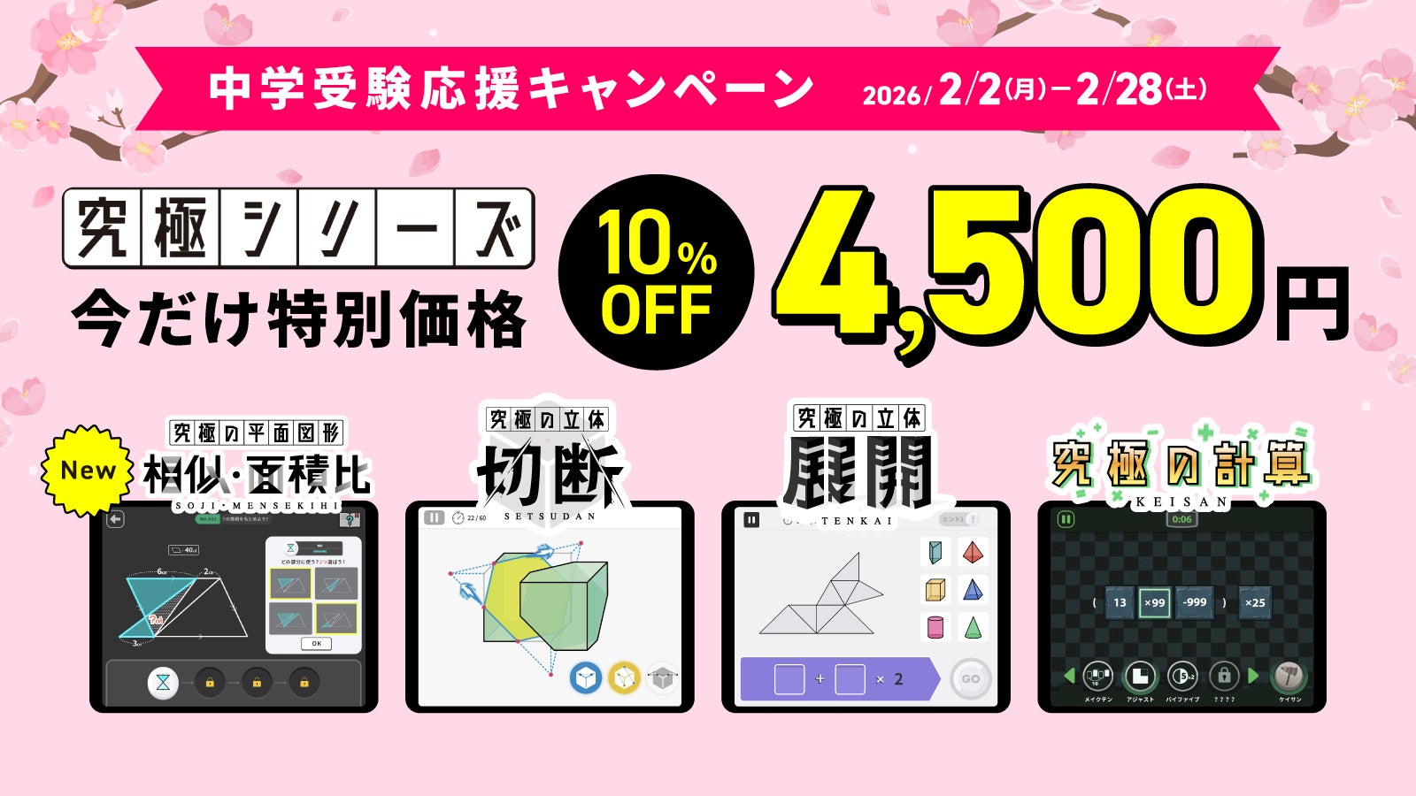 2026年2月28日(土)までの期間限定で、中学受験生に向けた「究極シリーズ」の全タイトルを10%オフでご提供します。
