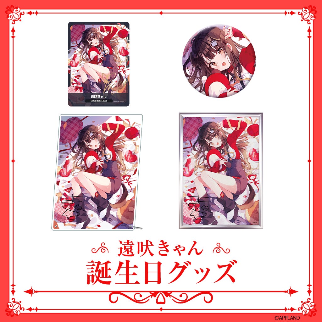 10月4日(土)に誕生日を迎える遠吠きゃんの誕生日記念グッズ&ボイスを、当社が運営する公式グッズ販売サイト(APPLAND OFFICIAL SHOP)にて販売いたします!記念ボイスにはVRバージョンが用意されており、BOOTHで購入可能です。ここでしかゲットできない誕生日限定グッズ&ボイスをお楽しみください!