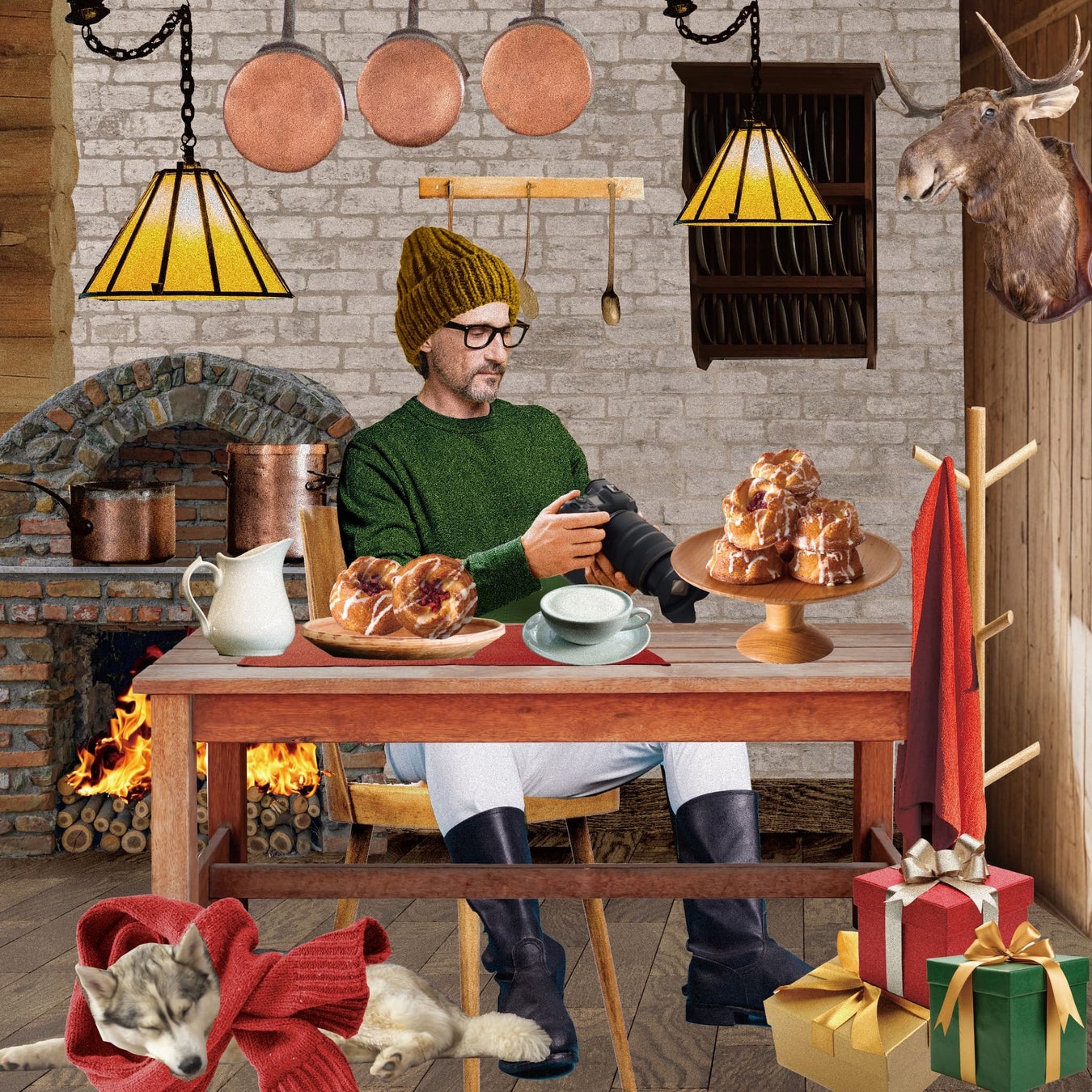 船乗りのブレッドはおひげがトレードマーク。そんな彼には憧れの存在がいます。白いおひげに赤い服がトレードマークの、そう、あの人です。しろいしの街よりもずっと北にある、とある街にやってきました。世界中から手紙が集まる郵便局に、色とりどりのリボン工場・・・まるで子どもの頃に読んだ絵本のよう!どこからか聞こえるキャロルの歌声に誘われて、気づけば街の中心にやってきました。今年もいちばんのお祭りに向けて街中が大忙し。ひときわ賑わう食堂は、暖炉の火があたたかく揺れています。ぐぅとお腹を鳴らして「おすすめを」と食いしん坊のブレッド。ホットミルクとともに、ベリーが散りばめられたお菓子がやってきました。ふわっと柔らかくて甘酸っぱくて、どこか懐かしい香り。「みんなこれが大好きさ」と隣のテーブルからウィンクが。パチリと一緒に写真をとって、旅の手帖に書き加えます。夢のようにおいしい土産話に、うっとりと浸るのでした。