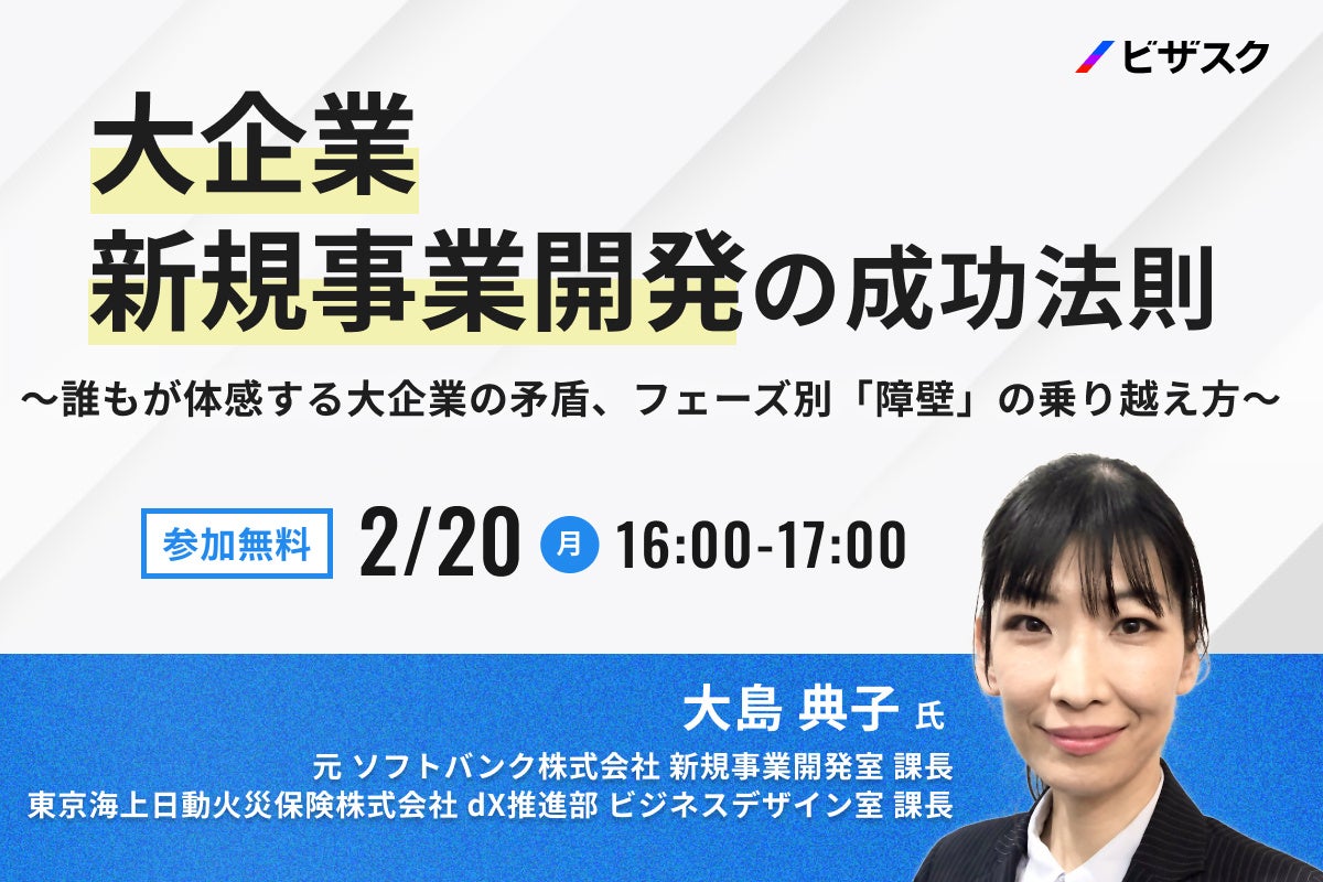 【2/20(月)16時】元ソフトバンク社 新規事業開発担当が教える「大企業 新規事業開発の成功法則 ~誰もが体感する大企業の矛盾、フェーズ別『障壁』の突破方法~」無料オンラインセミナーを開催