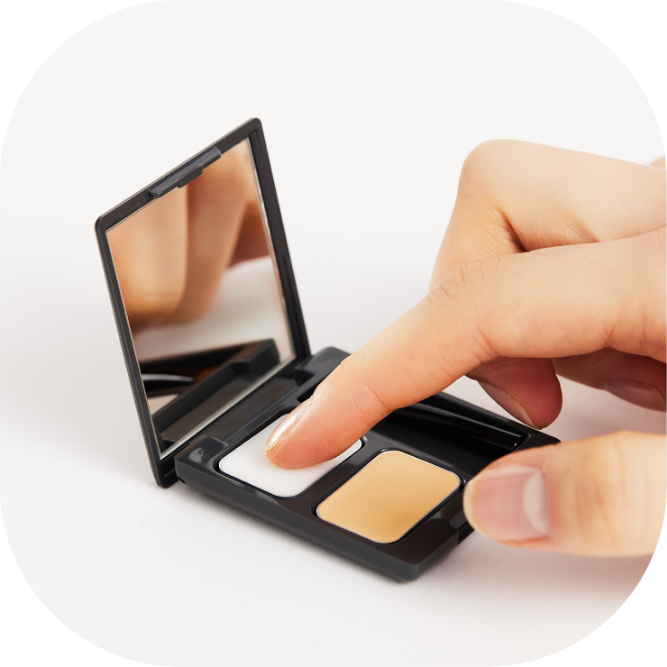 アイコンシーラーをケース付属のブラシや指先で適量とり、目のまわりの気になる部分にのせます。指先でやさしくお肌になじませてください。