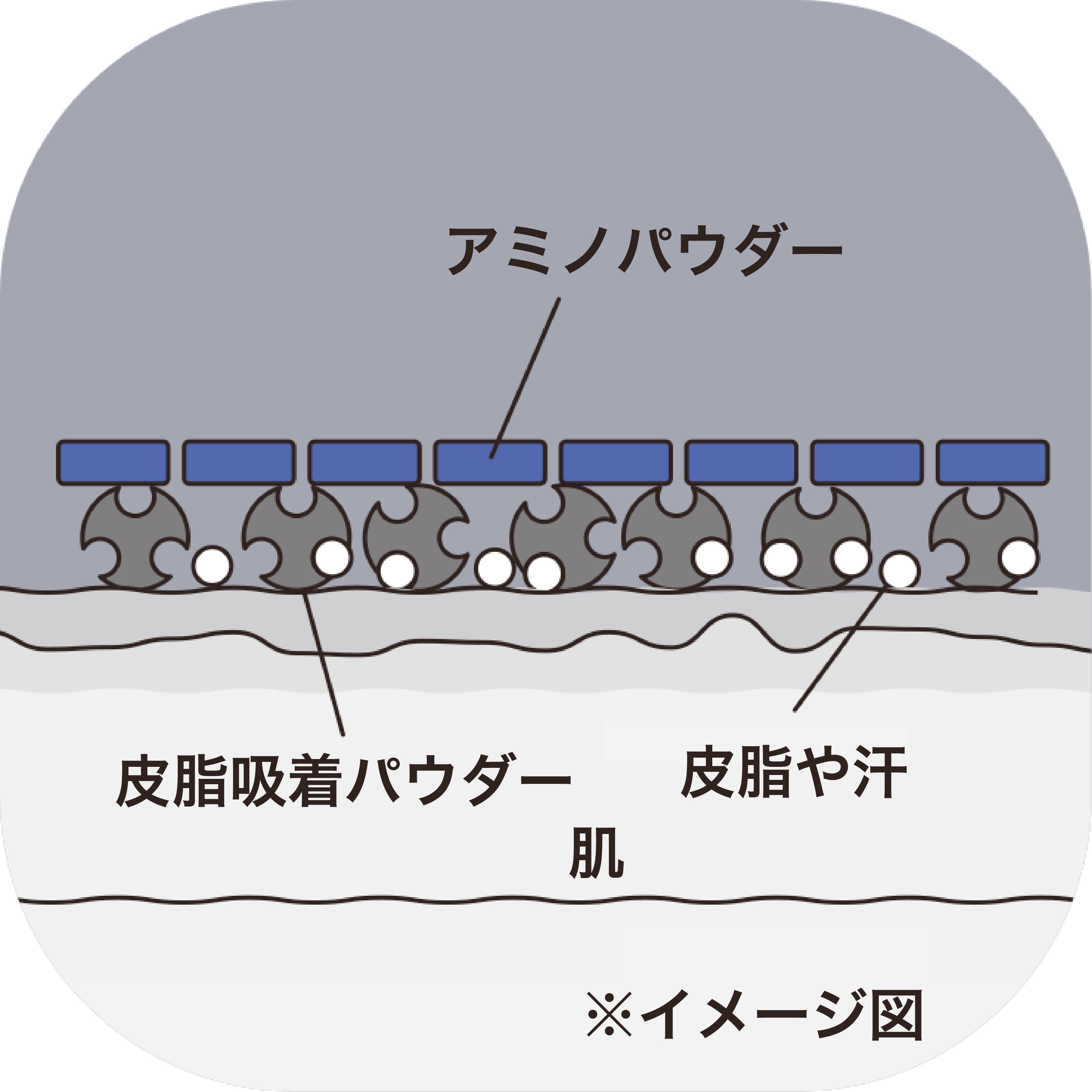 オイルに加えて、ふわっと伸びて肌にフィットするアミノパウダー*9と皮脂吸着パウダー*10をW配合。