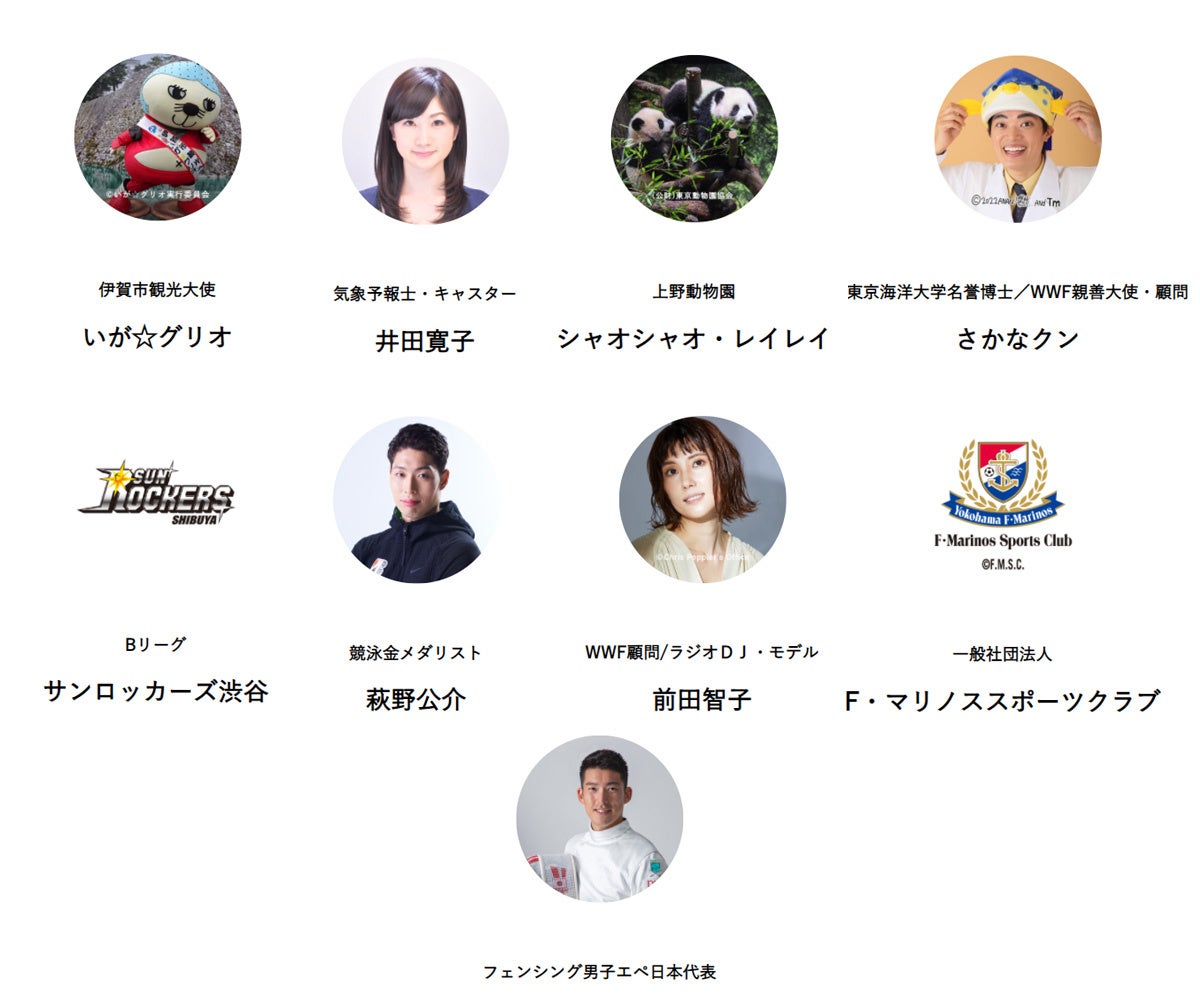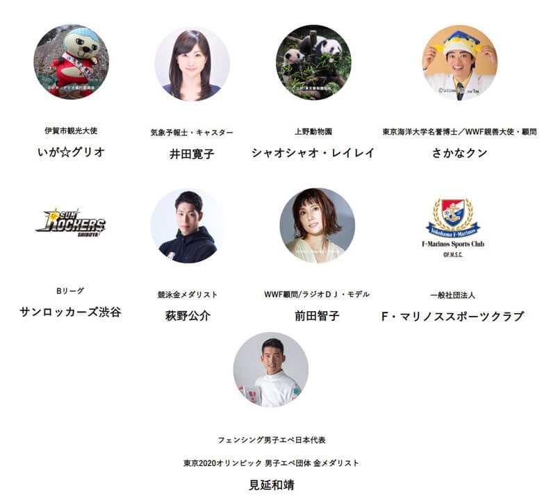 また、EARTH HOURにおける「EARTH HOUR 2022 サポーターズ(親善大使)」には、競泳金メダリストの萩野公介さん、WWF顧問/ラジオDJ・モデルの前田智子さん、スポーツチームからはBリーグ サンロッカーズ渋谷[WJ1] の皆さまなど、さまざまな方に就任いただきました。EARTH HOUR当日にかけて、環境保全のメッセージや、EARTH HOUR Weeksへの参加、そして当日の消灯を広く伝えていきます。