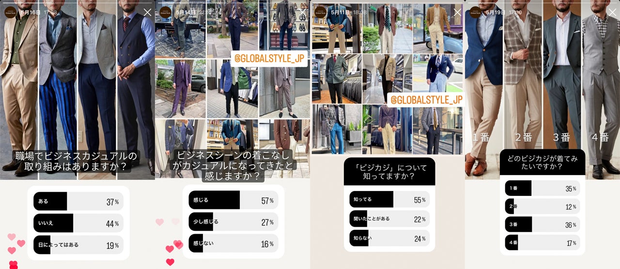 ・調査方法(集計方法、算出方法):オーダースーツ専門店「GINZAグローバルスタイル」のインスタグラム公式アカウントのストーリーズでアンケートを実施(ユーザーが回答)