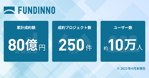 「FUNDINNO」の登録ユーザー数が約 10 万人に。成約プロジェクト数は 250 件を超え、累計成約額は 80 億円に到達。