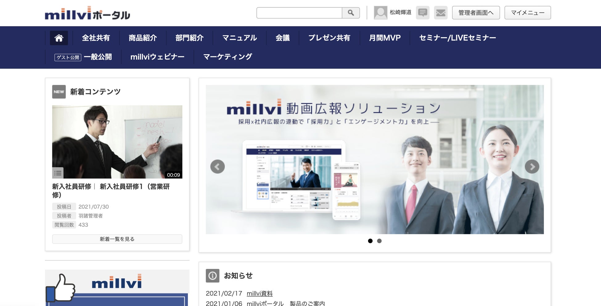 ▼動画共有ポータルサイト:millviポータル 製品ページ