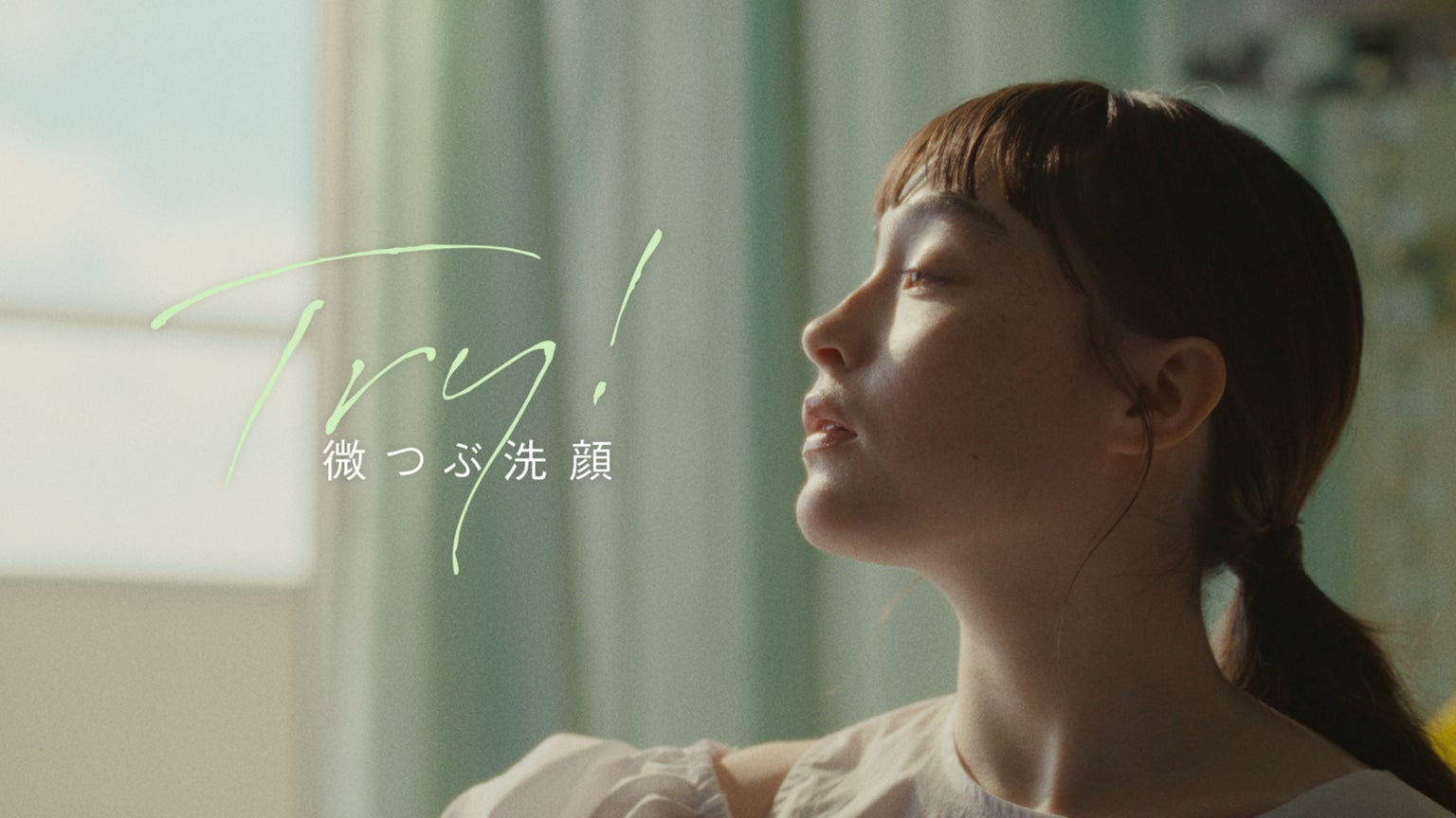 パウダーウォッシュの“微つぶ”の新感覚の洗い心地、洗った後の素肌の心地よさ、つるんとした肌をモトーラ世理奈さんに表現していただきました。