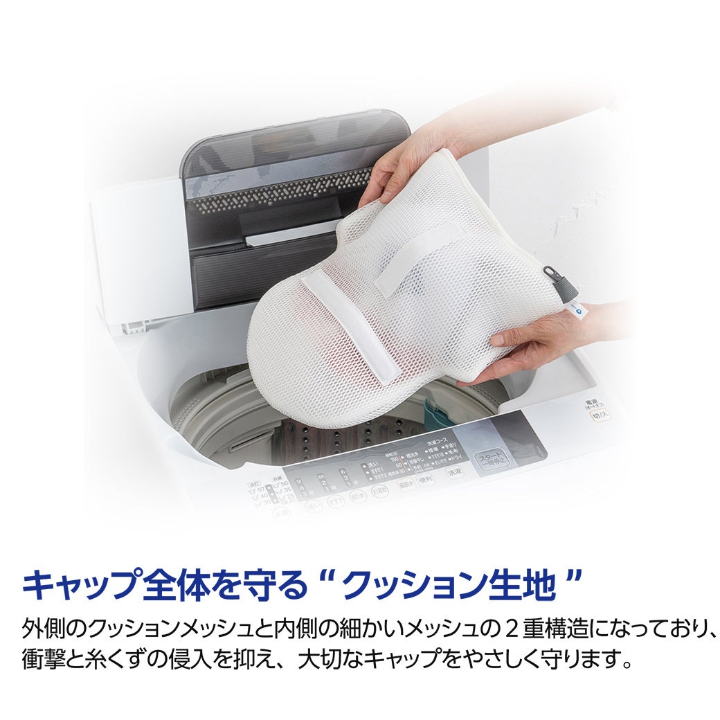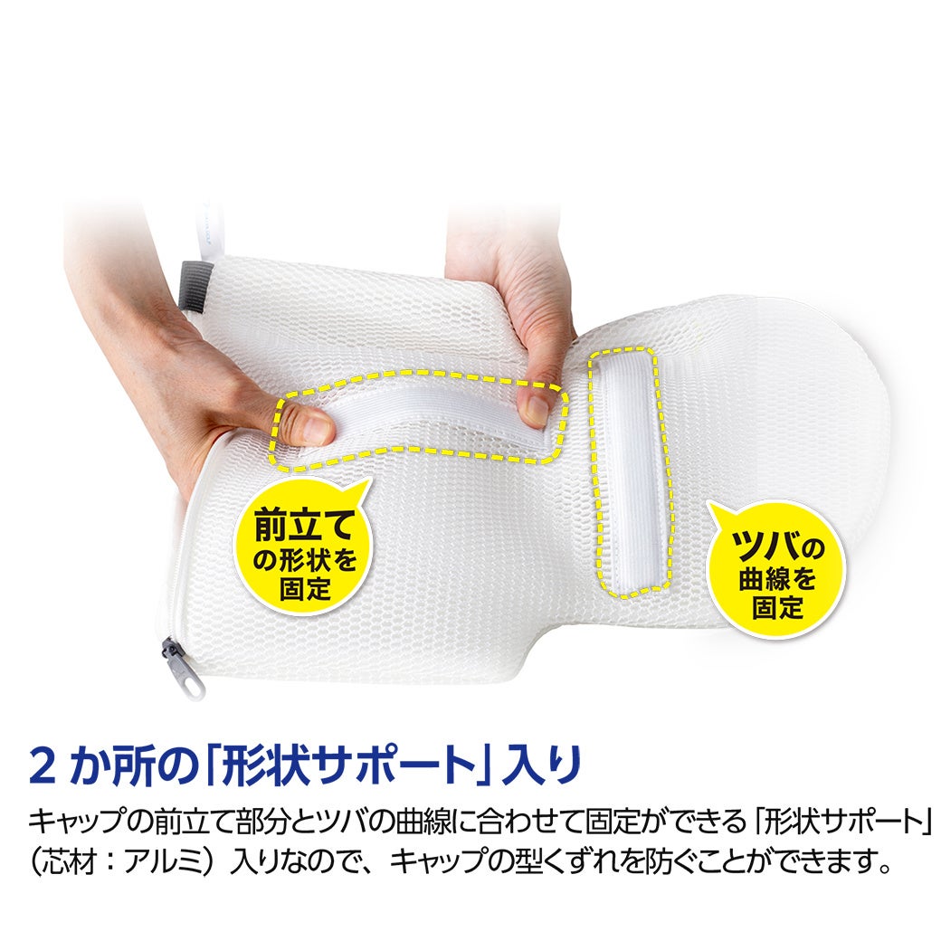 外側のクッションメッシュと内側の細かいメッシュの2重構造になっており、大切なキャップをやさしく守ります。