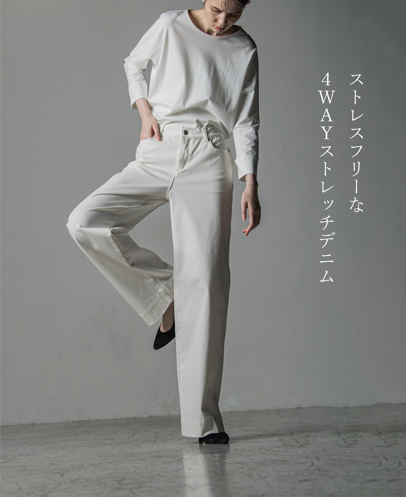 今シーズン、オシャレなヌケ感を出してくれるワイドデニムはねらい目。 オトナの気持ちに寄り添う抜群の履き心地の良さがポイント。