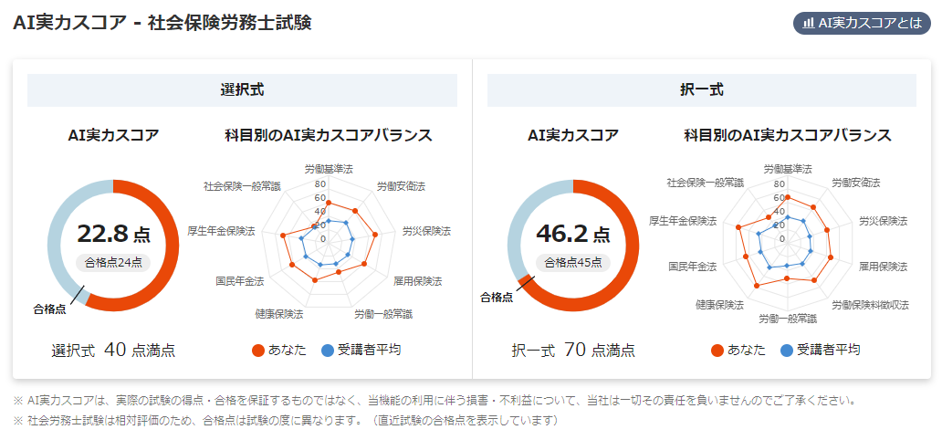 *AI実力スコアは、実際の試験の得点・合格を保証するものではなく、当機能の利用に伴う損害・不利益につい当社は一切その責任を負いませんので